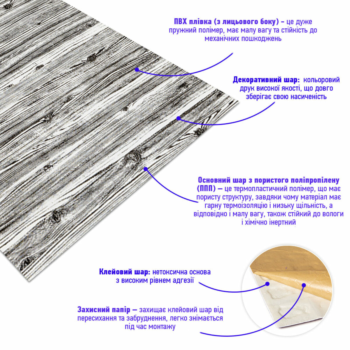 Опис - Самоклеюча 3D панель 19600x700x3мм Дерево Зебра SW-00001475