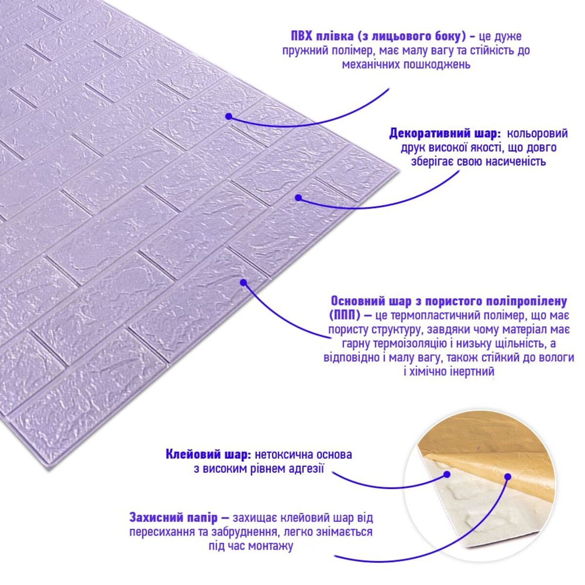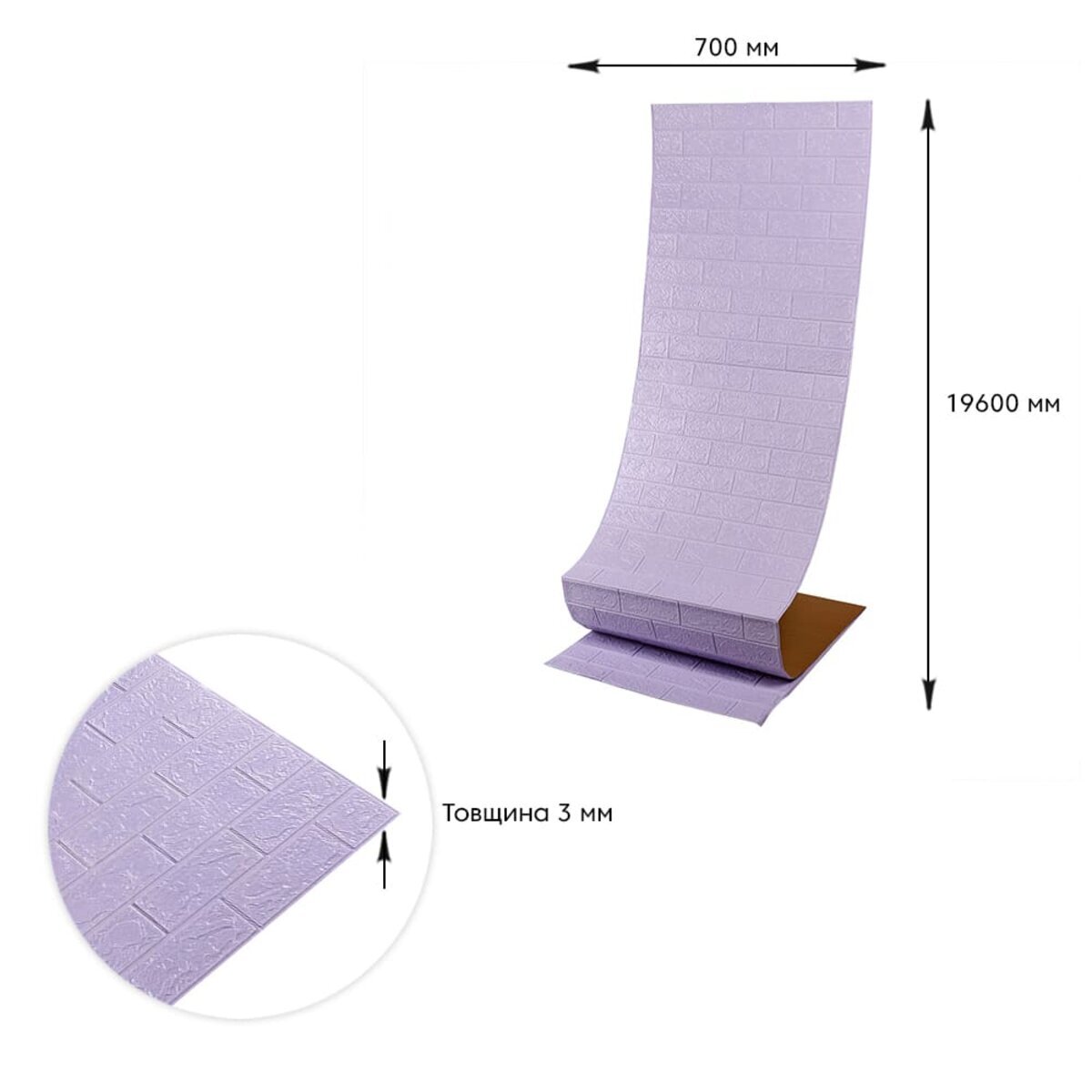 Характеристики - Самоклеюча 3D панель 19600x700x3мм Світло-фіолетова Цегла SW-00001470