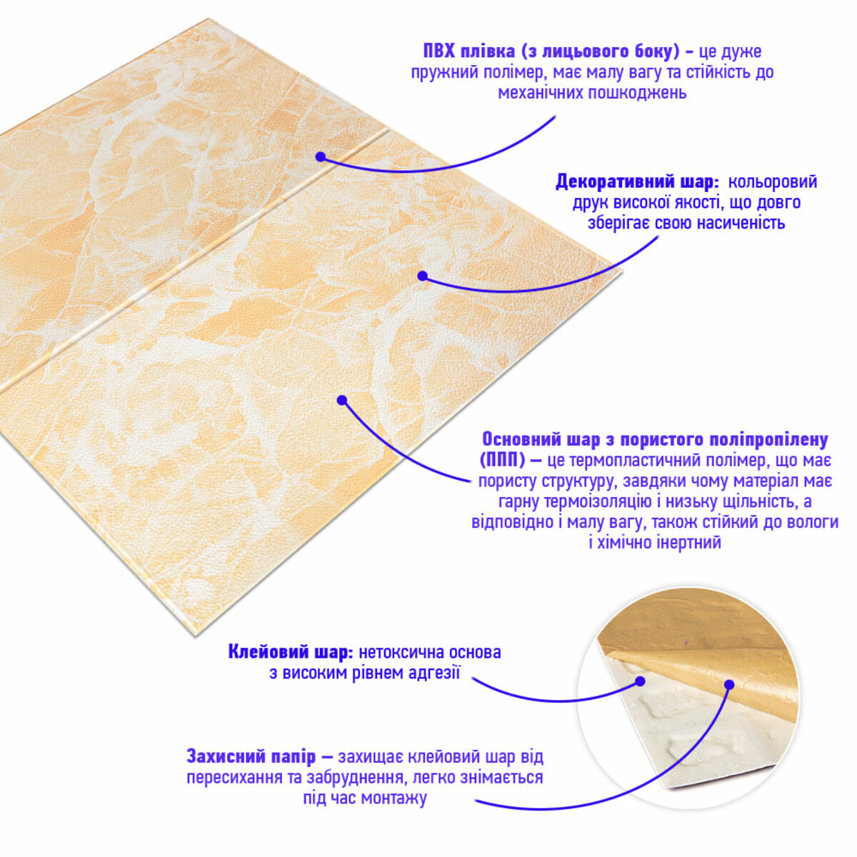Відгуки - Самоклеюча 3D панель 700х700х4мм Персиковий мармур SW-00001343