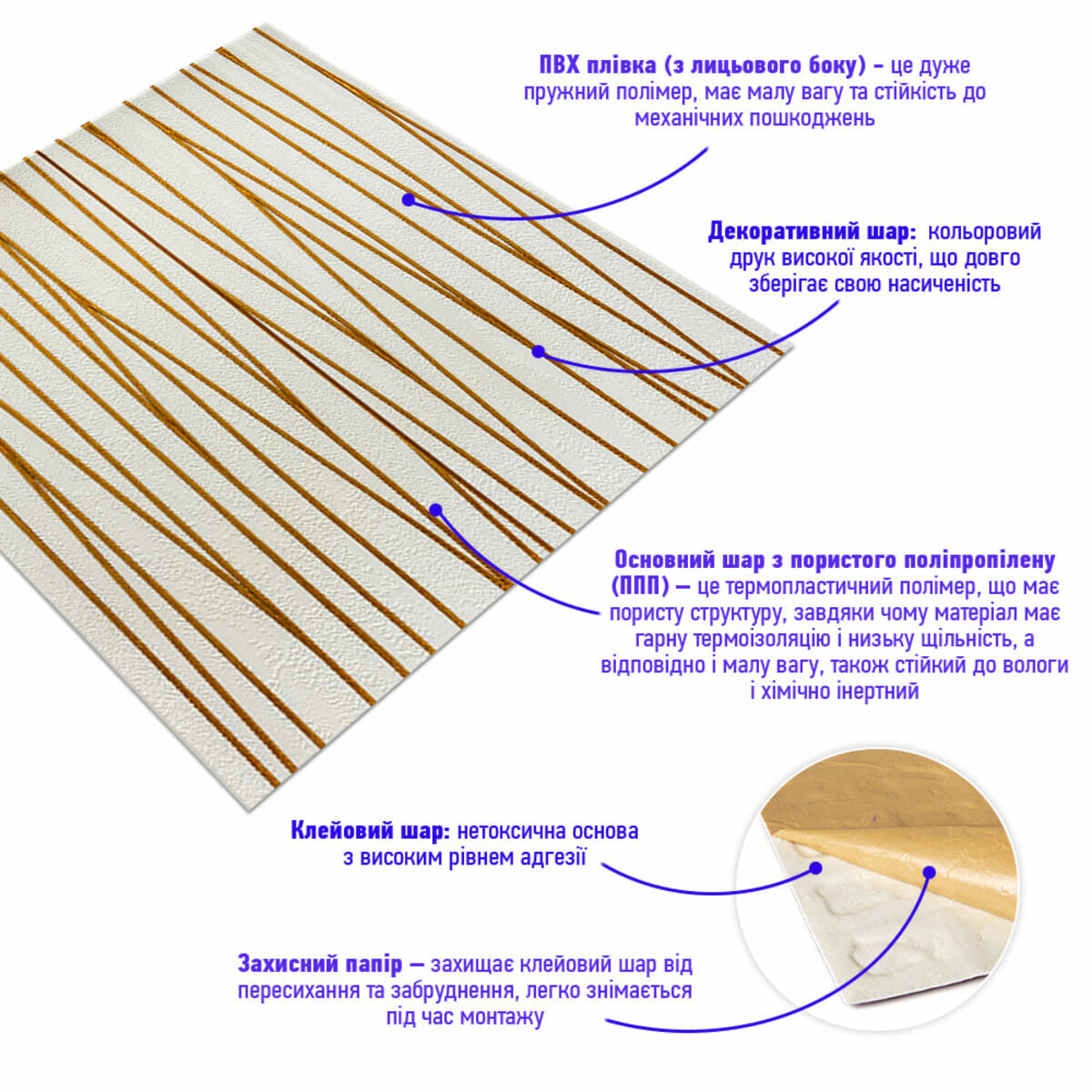Відгуки - Самоклеюча 3D панель 700х700х5мм Золоті стрічки (440) SW-00001184