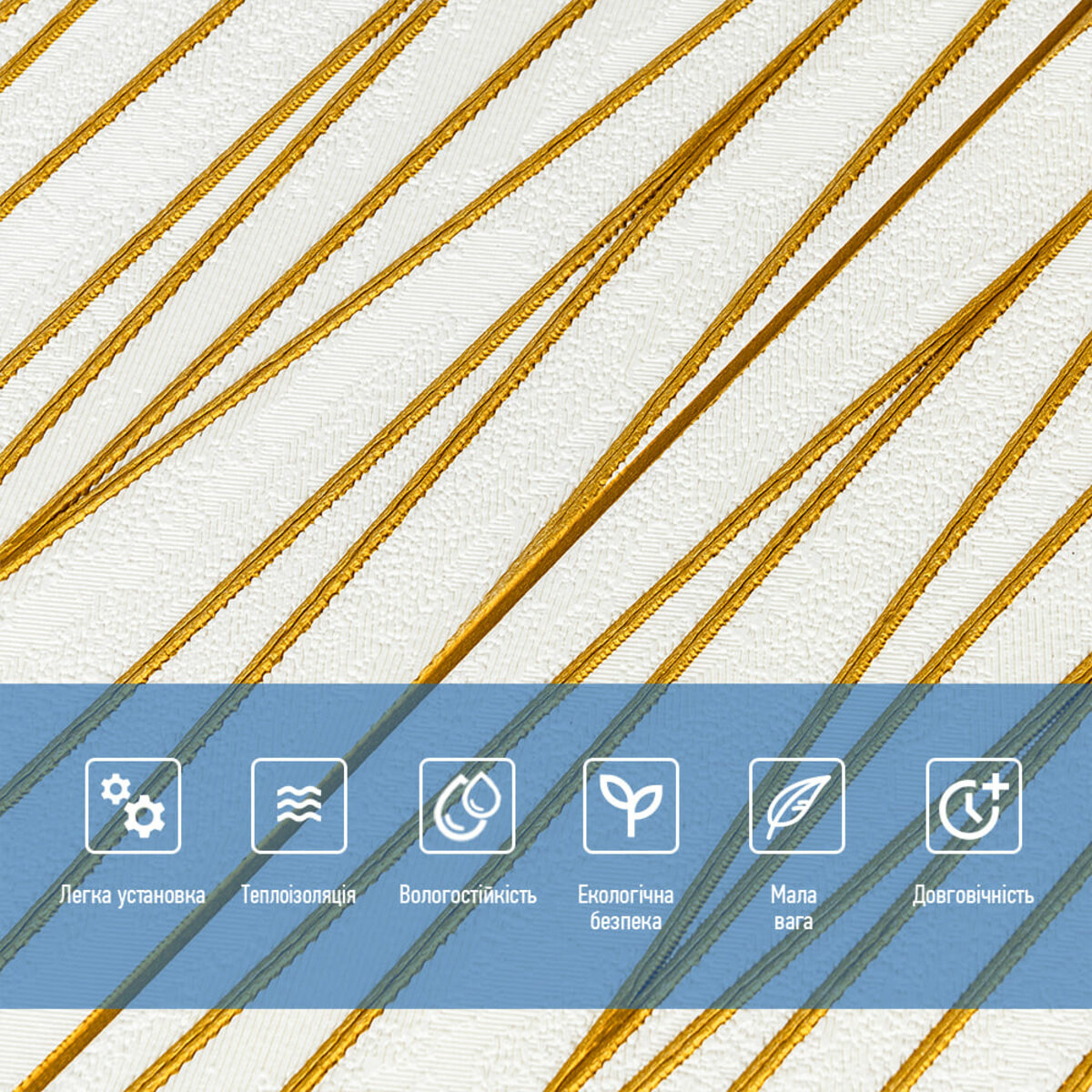 Отримайте AI аналітику по товару Самоклеюча 3D панель 700х700х5мм Золоті стрічки (440) SW-00001184