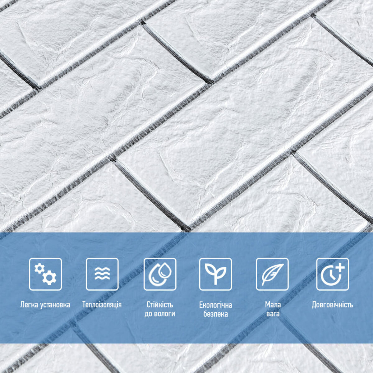 Відгуки - Самоклеюча 3D панель 700х770х5мм Біла цегла смужка срібло (100-5) SW-00000753