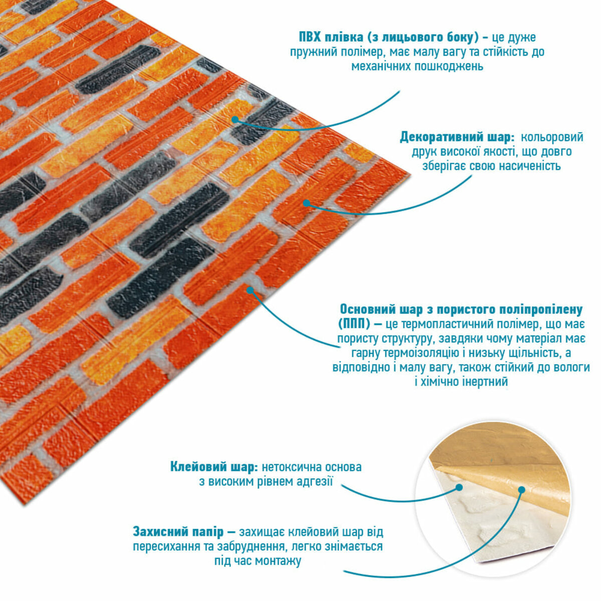 Опис - Самоклеюча 3D панель під бежево-коричневу катеринославську цеглу 20000x700x3мм SW-00002570-