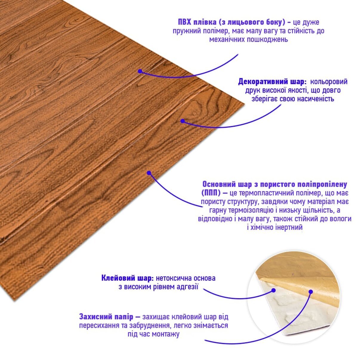 Опис - Самоклеюча 3D панель під дерево 2800x700x3мм SW-00002224