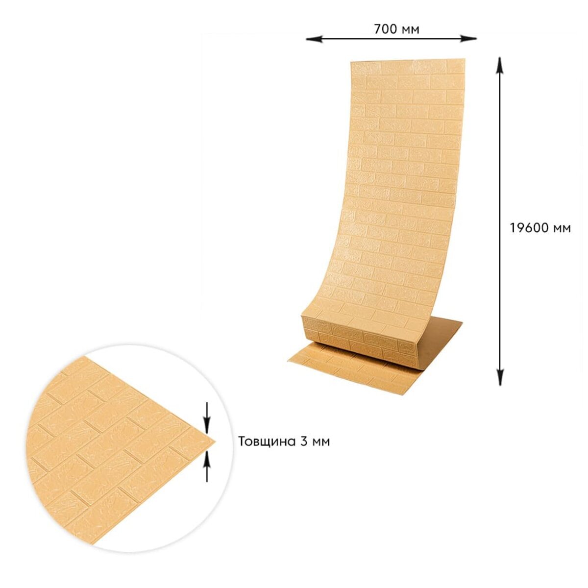 Характеристики - Самоклеюча 3D панель в рулоні 19600x700x3мм Бежева Цегла (R009-3-20) SW-00001195