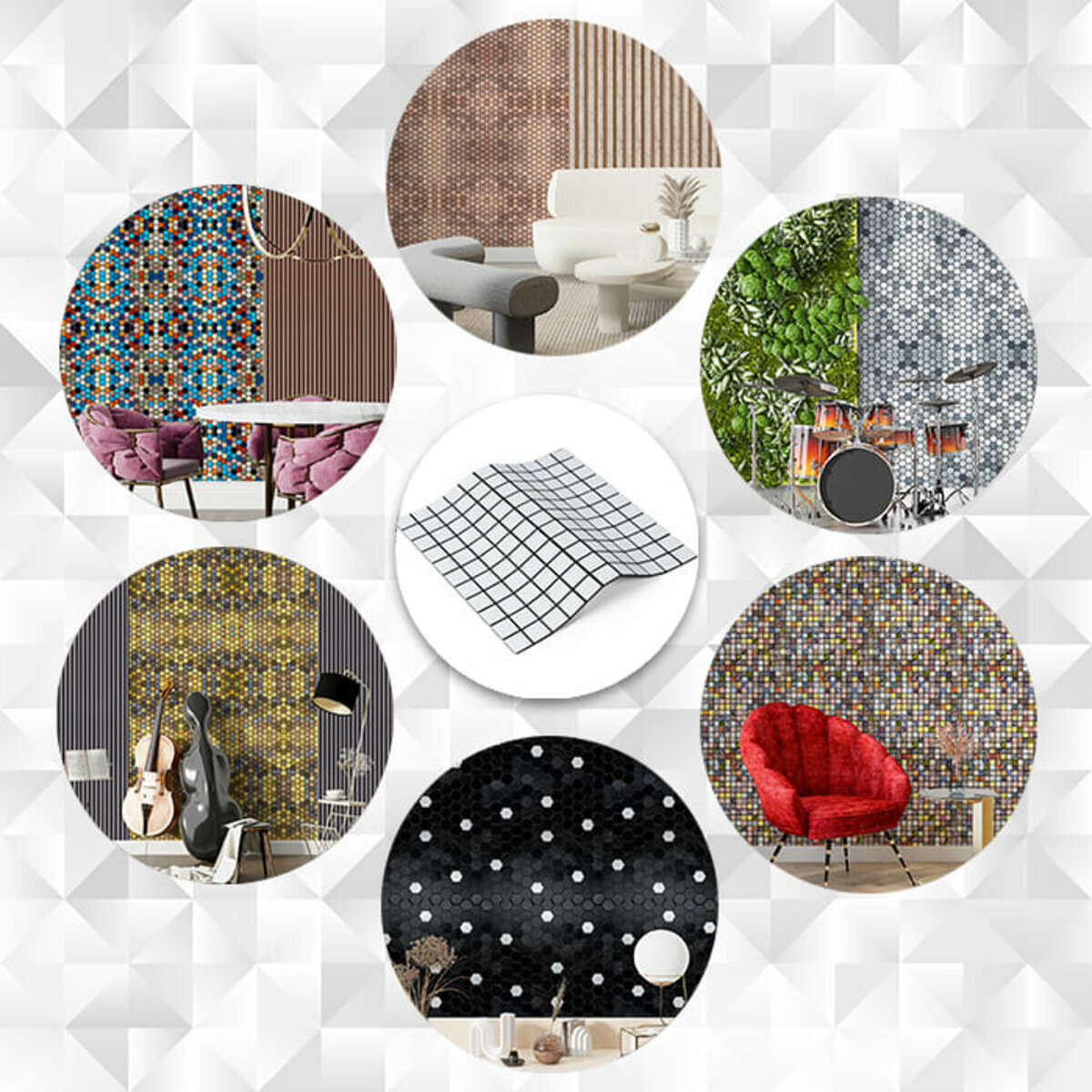 Опис - Самоклеюча алюмінієва плитка 300х300х3мм Біла мозайка SW-00001775