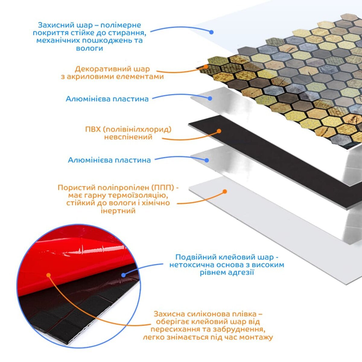 Характеристики - Самоклеюча алюмінієва плитка 300х300х3мм Луска SW-00001931