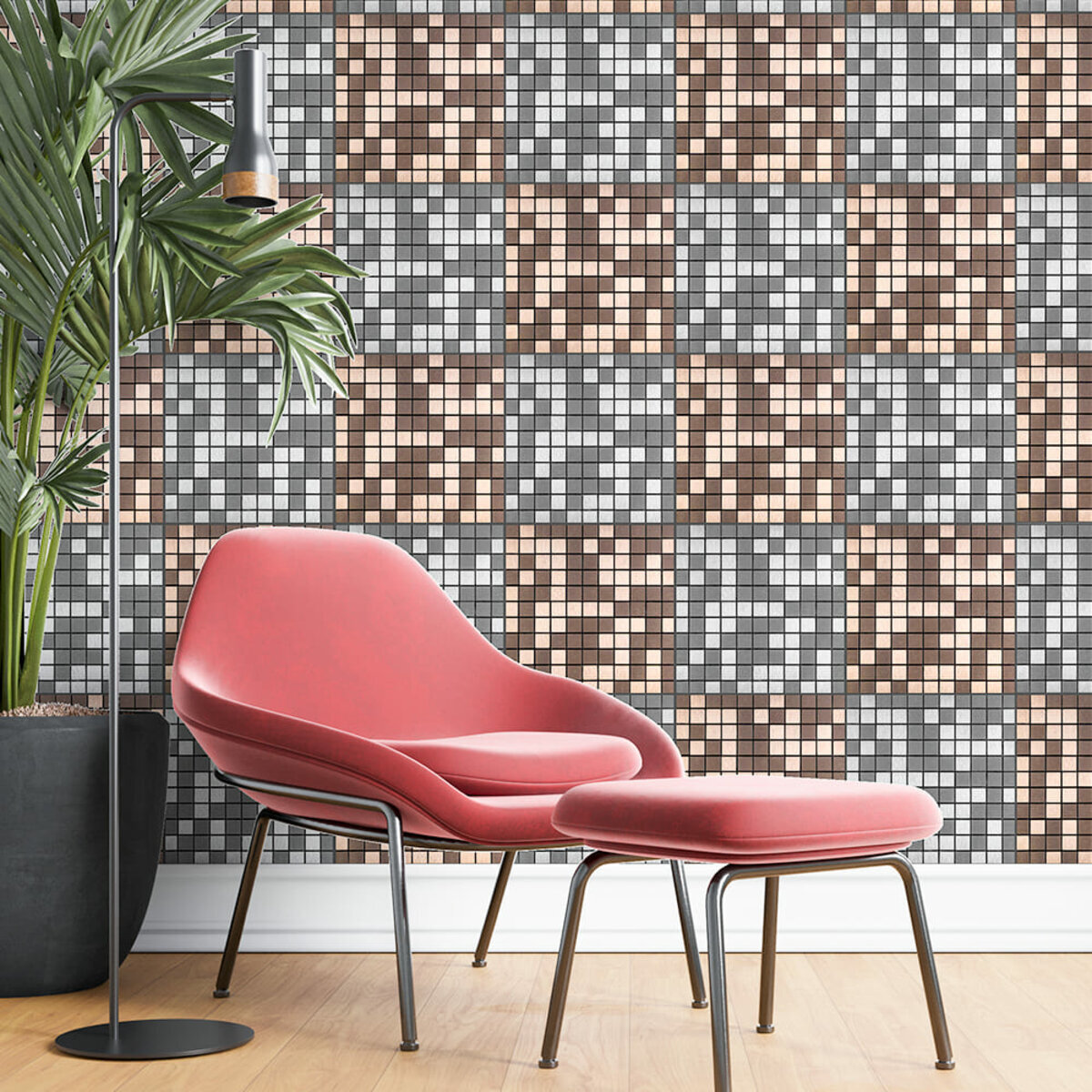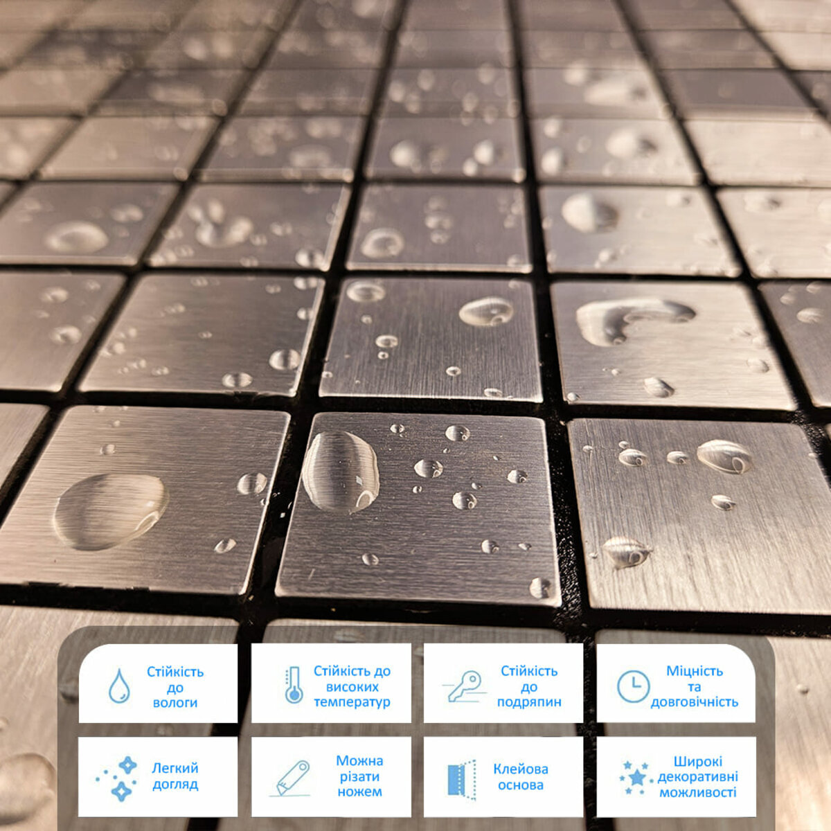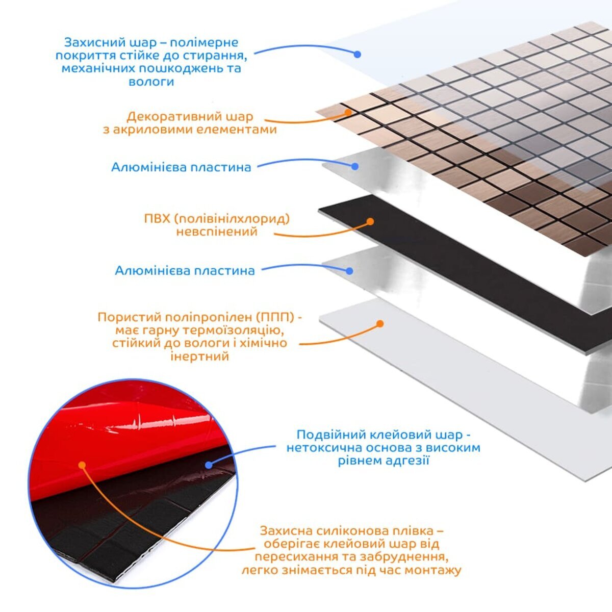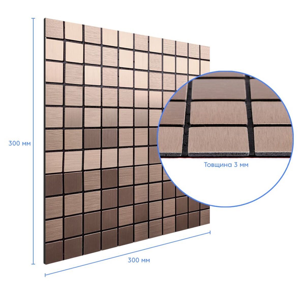 Характеристики - Самоклеюча алюмінієва плитка 300х300х3мм мідна мозаїка SW-00001157