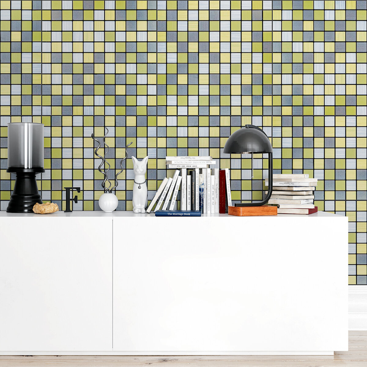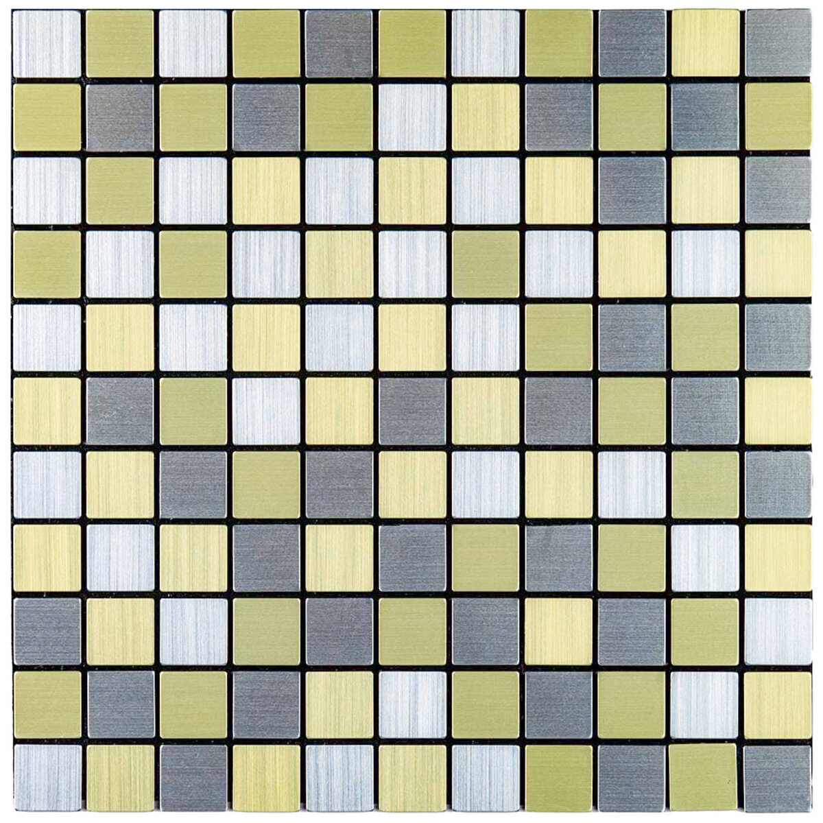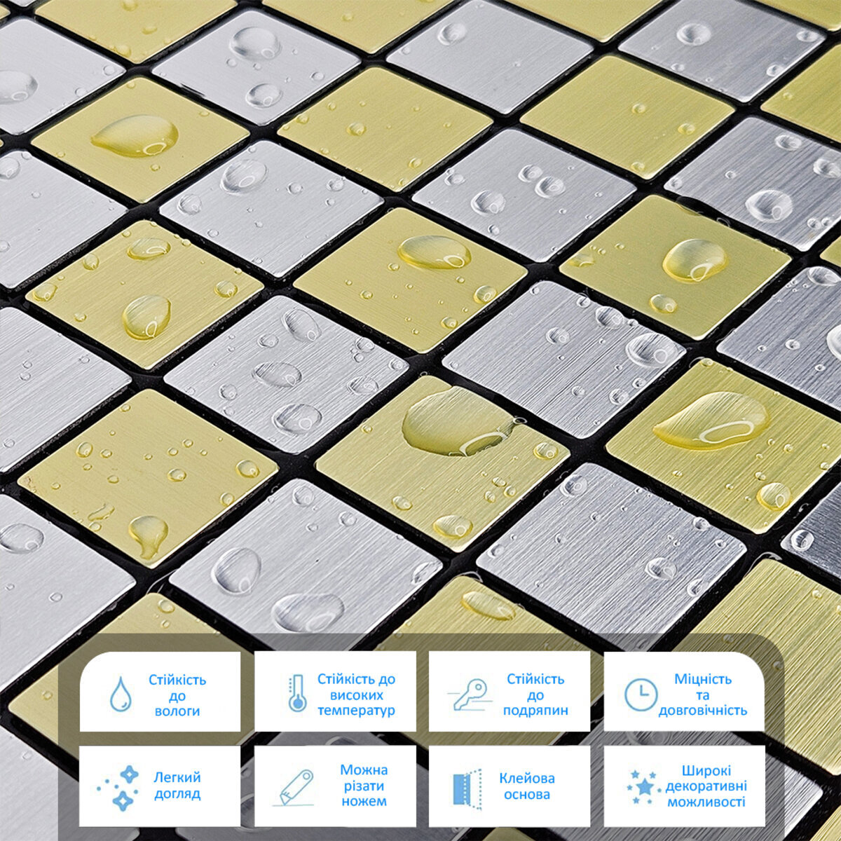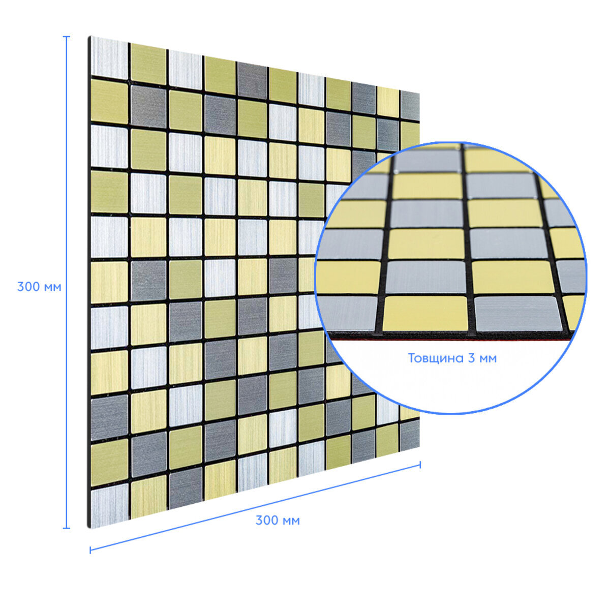 Опис - Самоклеюча алюмінієва плитка 300х300х3мм Срібна із золотом шахівниця SW-00001827