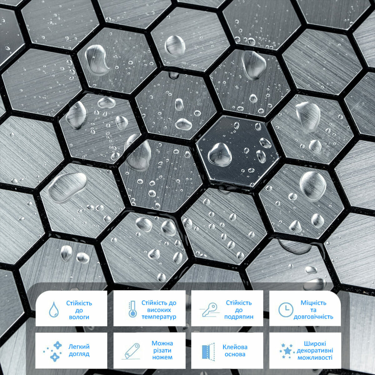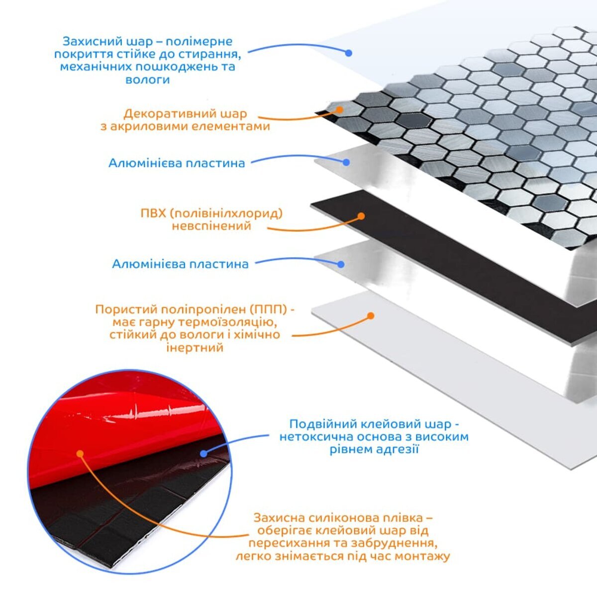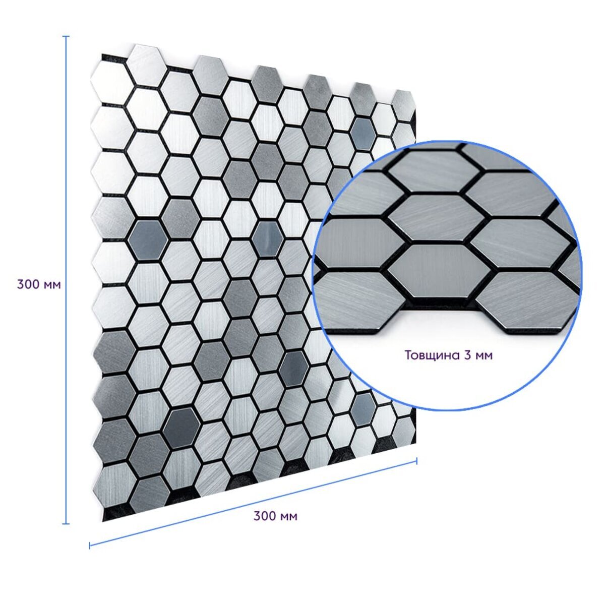 Опис - Самоклеюча алюмінієва плитка 300х300х3мм Срібна мозаїка із дзеркальними вставками SW-00001928