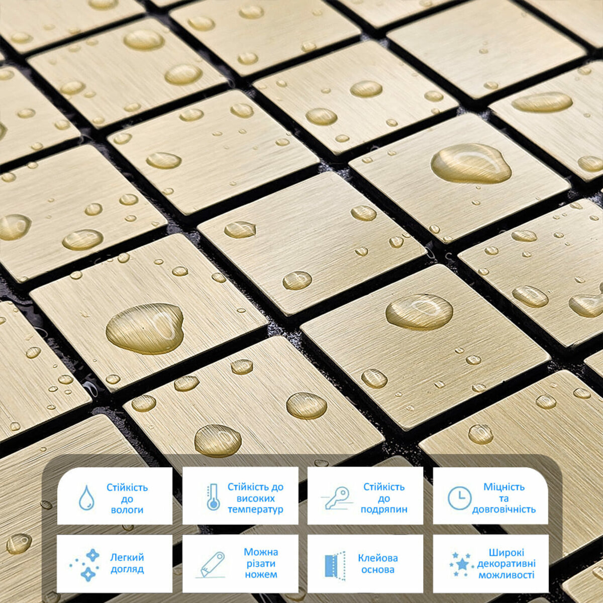 Відгуки - Самоклеюча алюмінієва плитка 300х300х3мм Зелене золото мозаїка SW-00001168