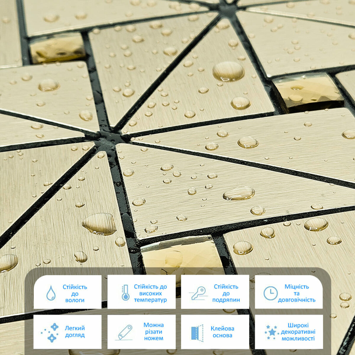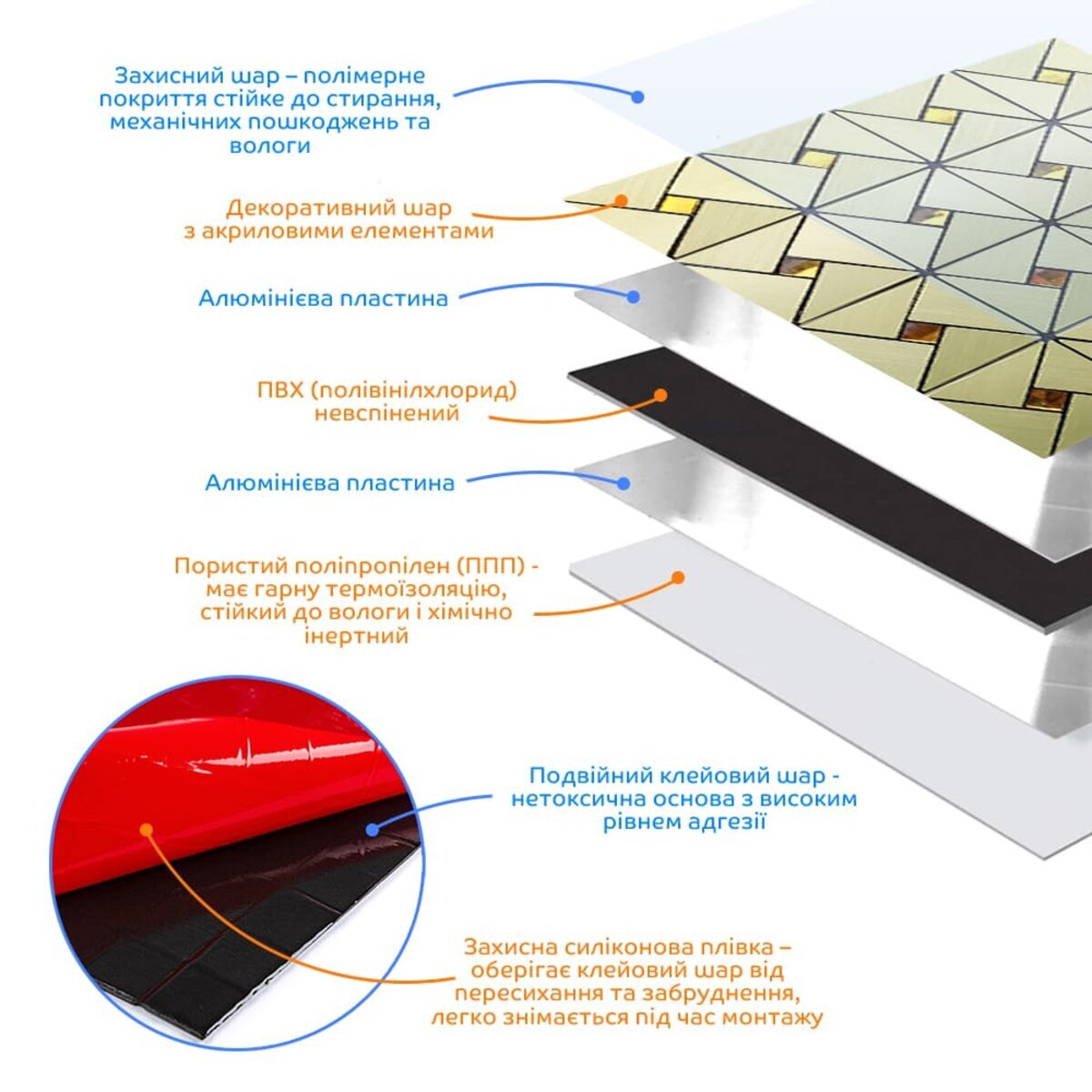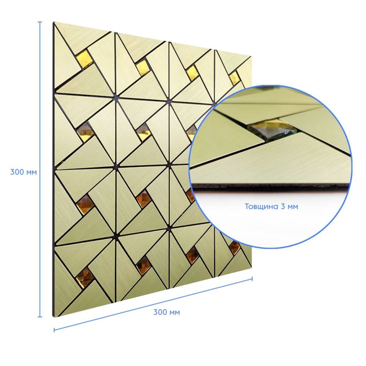 Характеристики - Самоклеюча алюмінієва плитка Зелене золото зі стразами SW-00001172