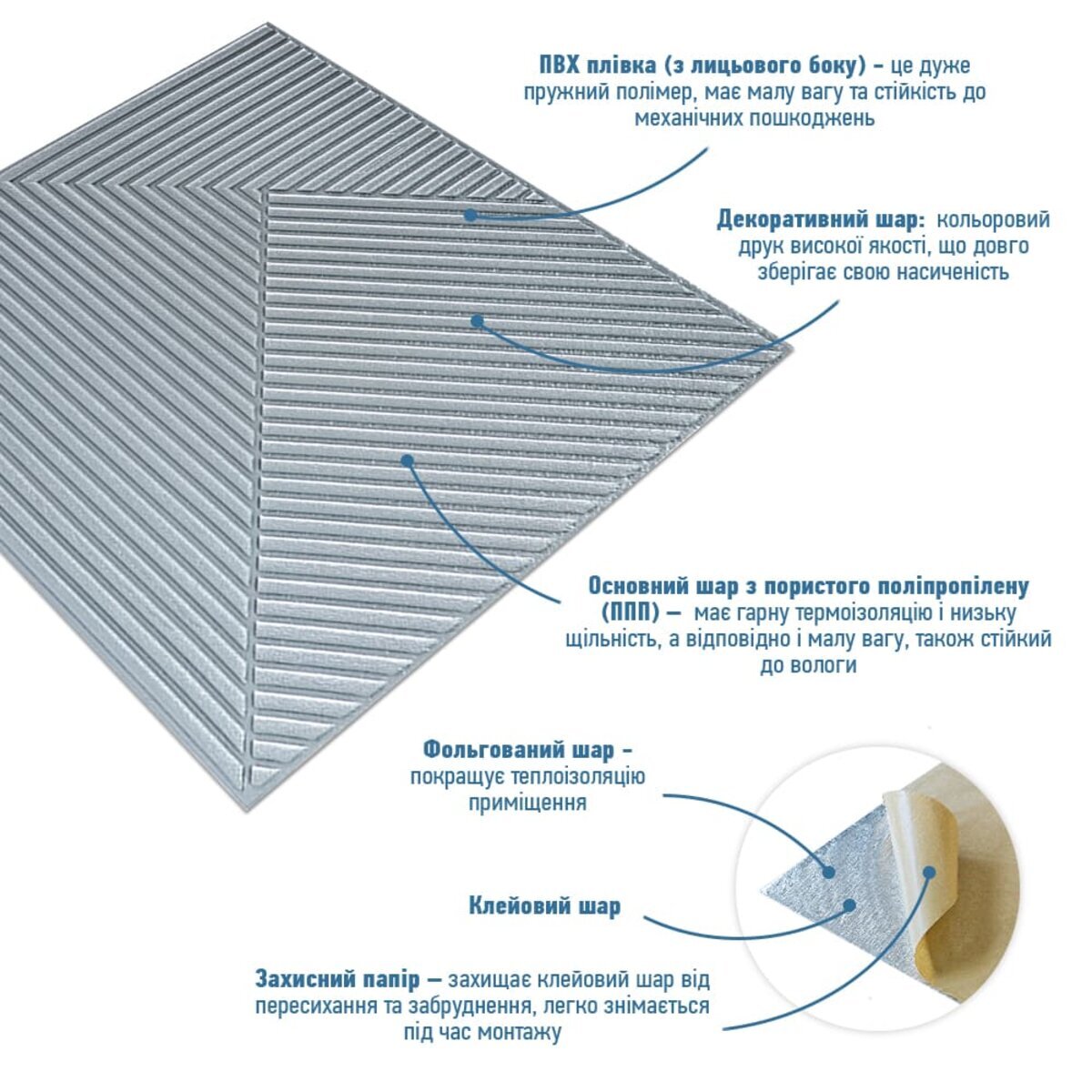Характеристики - Самоклеюча декоративна 3D панель 500х500х5мм Бамбук Сірий SW-00002878
