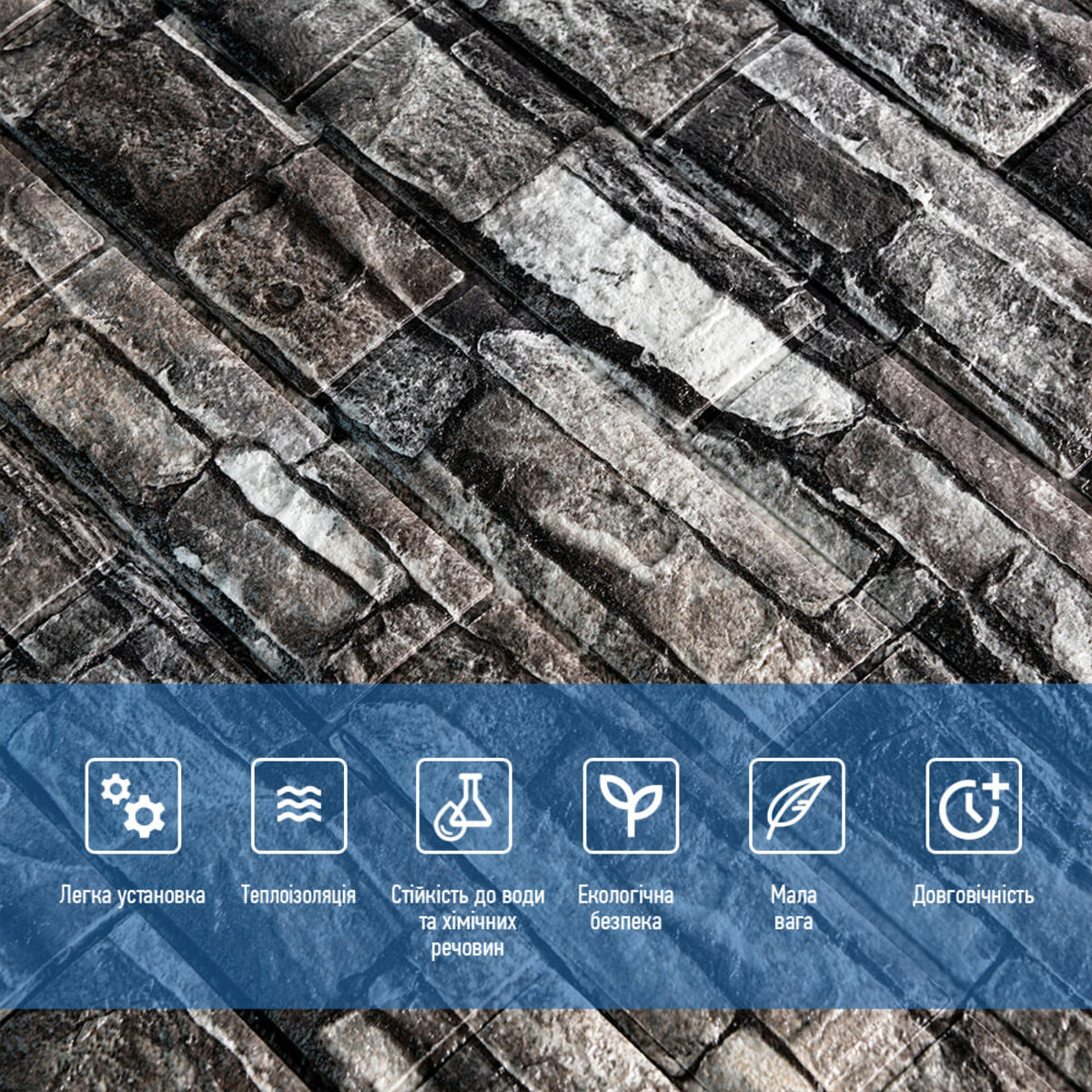 - Легкість монтажу: наявність клейового шару дозволяє встановити панелі без необхідності застосування додаткових матеріалів.