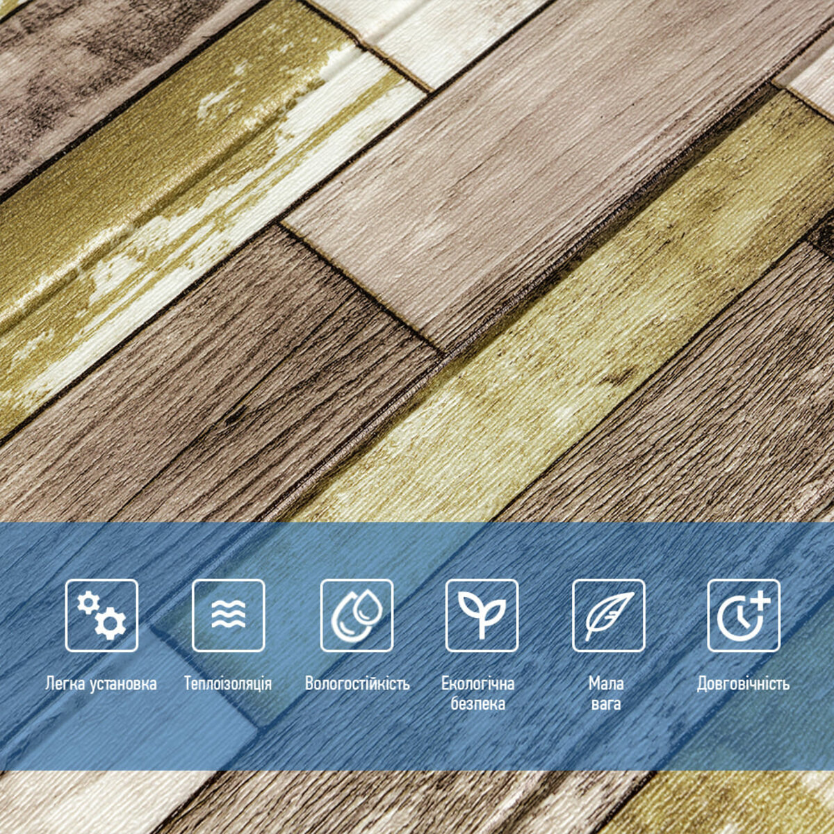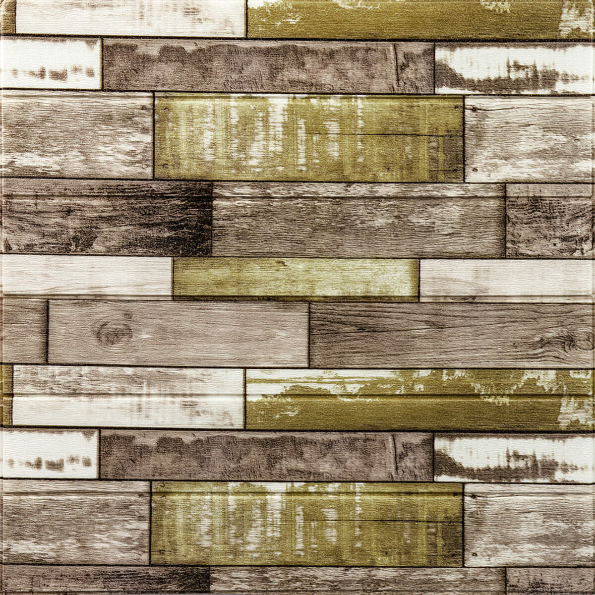 Характеристики - Самоклеюча декоративна 3D панель 700x700x4мм Зелено-коричневе дерево (378) SW-00000883