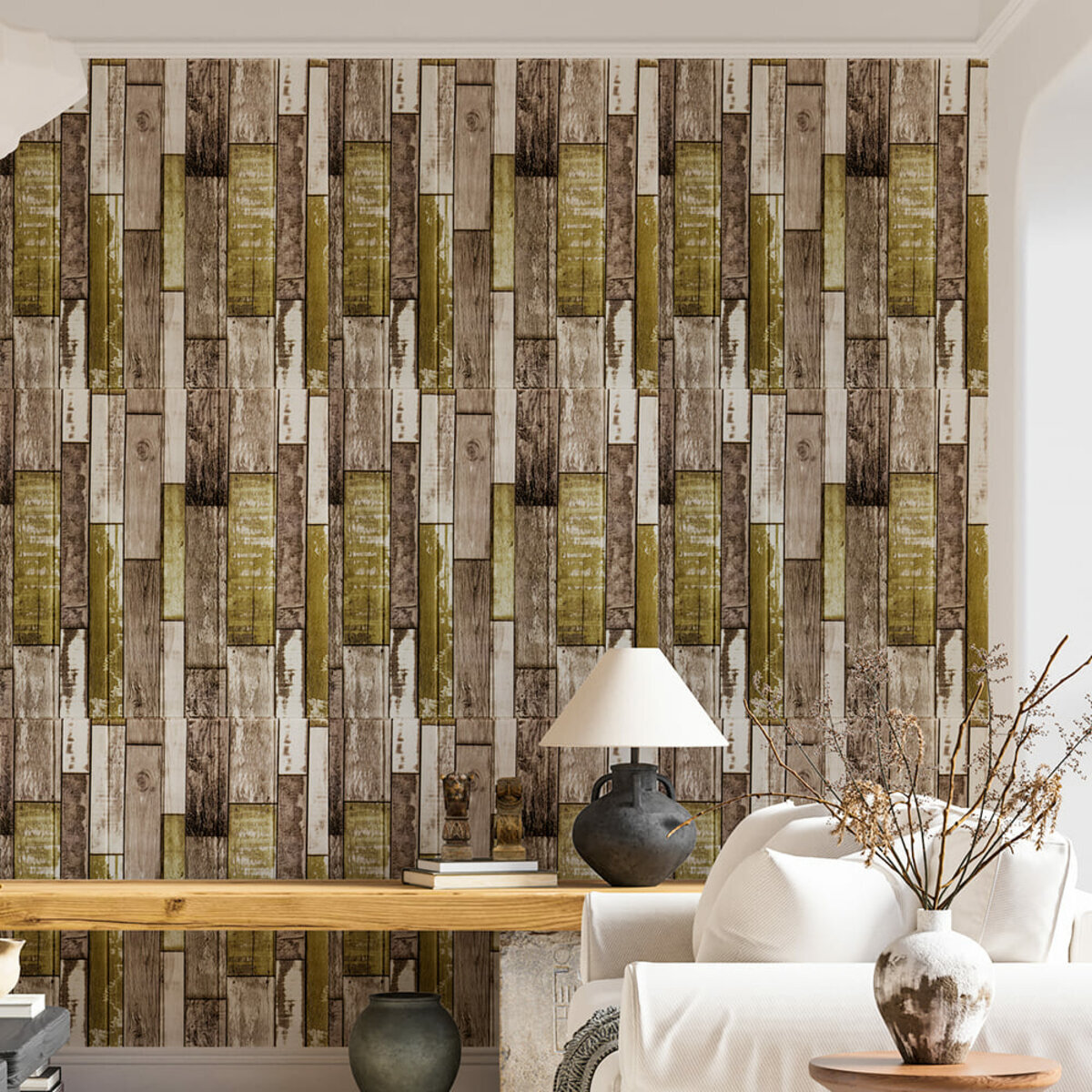 Самоклеюча декоративна 3D панель 700x700x4мм Зелено-коричневе дерево (378) SW-00000883