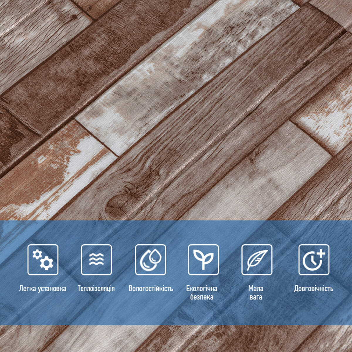 Опис - Самоклеюча декоративна 3D панель 700x700x5мм Коричневе дерево (049) SW-00000152