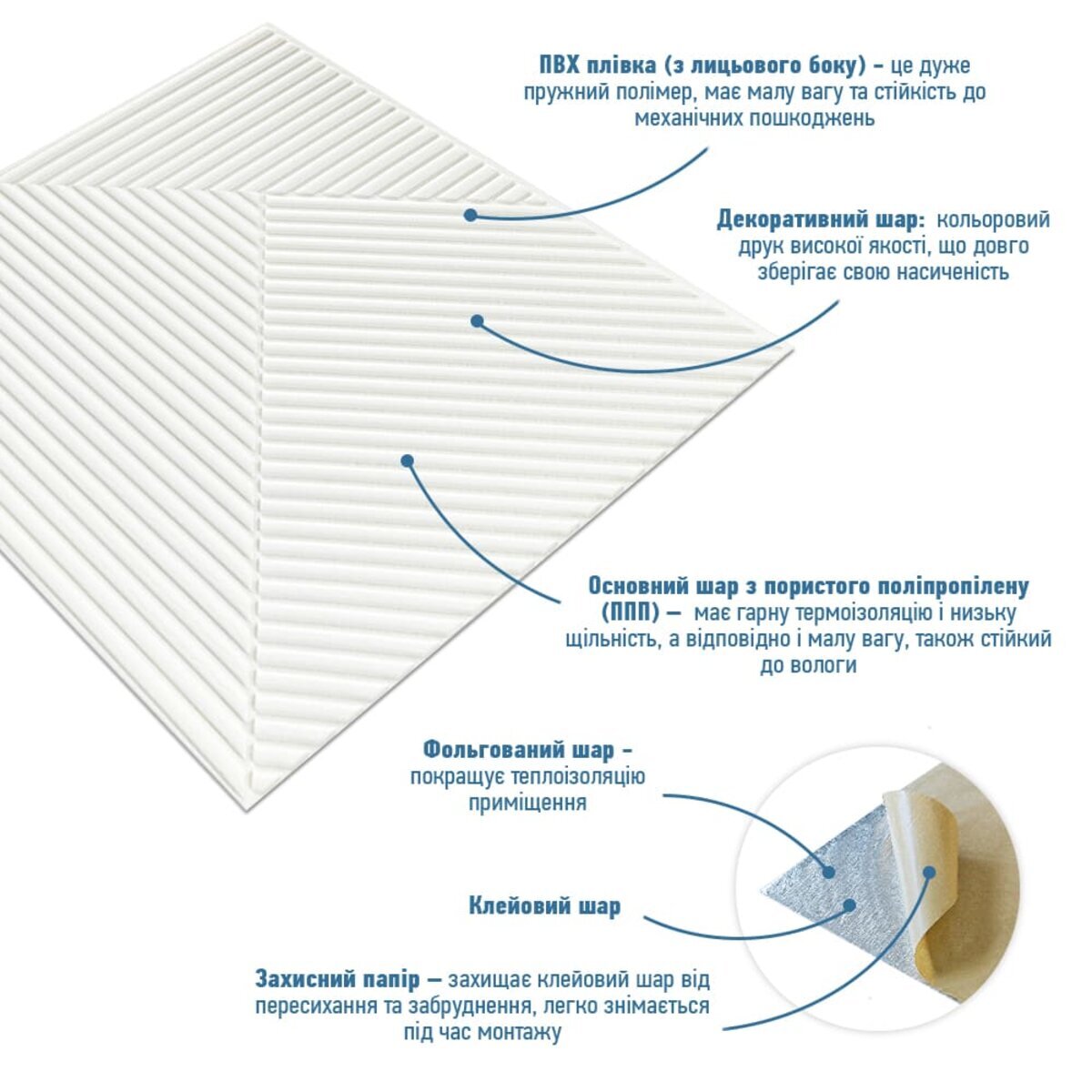 Характеристики - Самоклеюча декоративна 3D панель Бамбук Білий 500х500х5мм SW-00002877