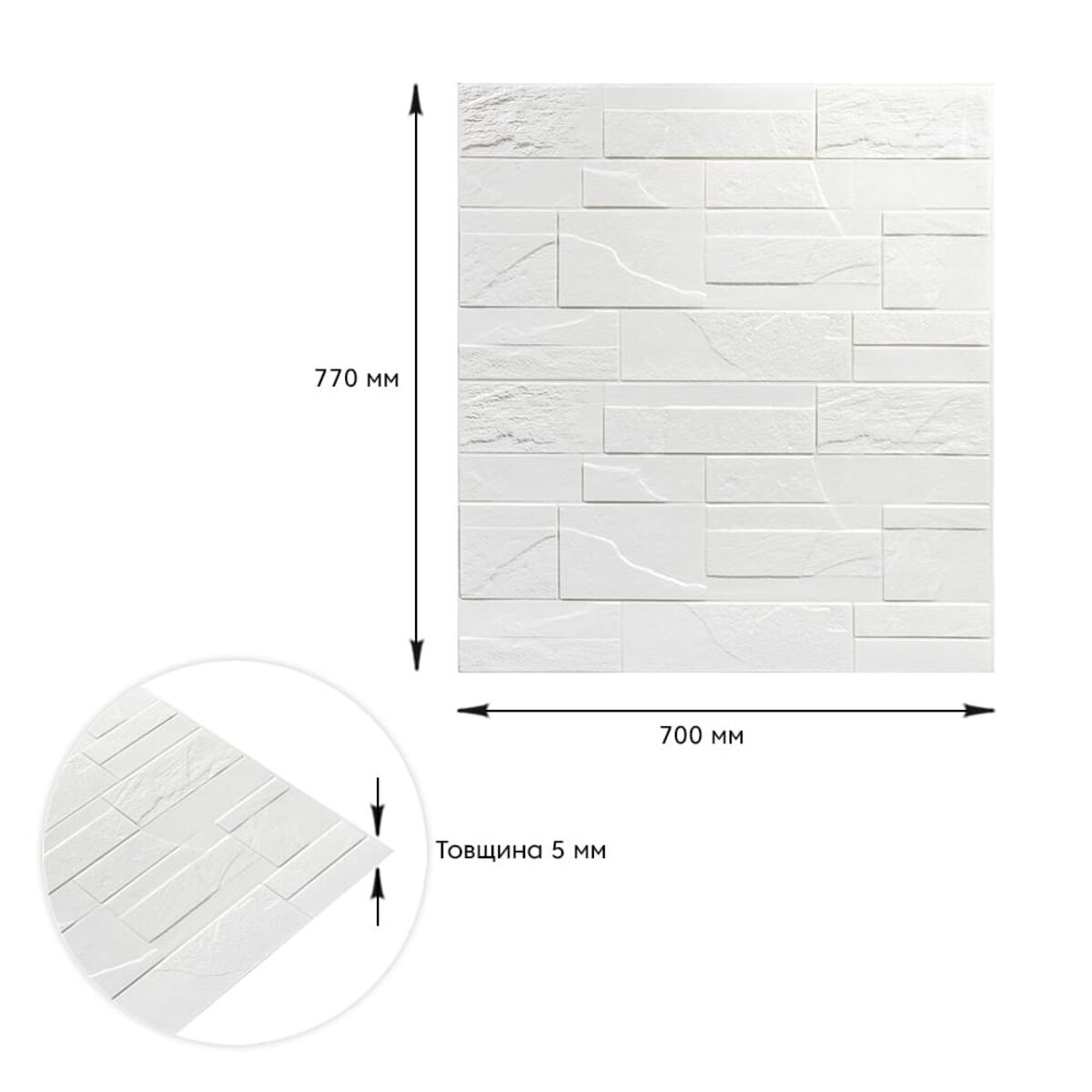 Самоклеюча декоративна 3D панель камінь Біла бита цегла700х770х5мм (180)
