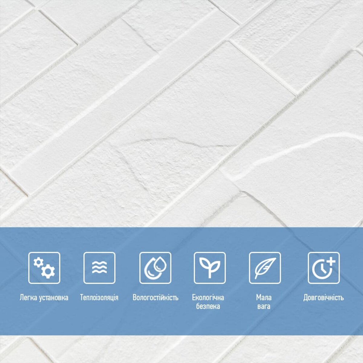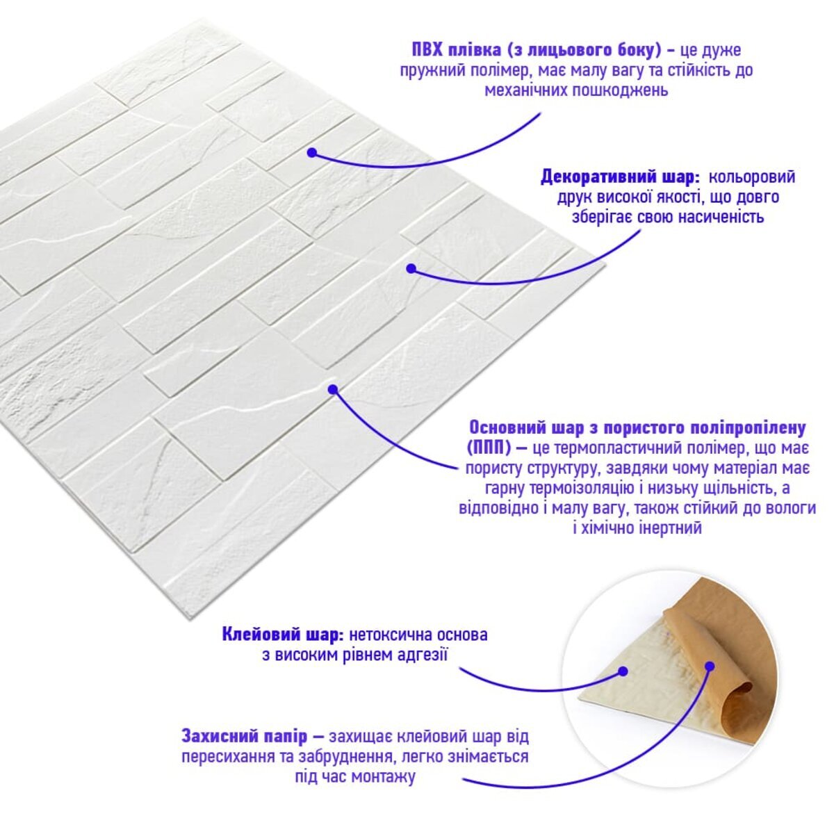 Декоративна панель під камінь виготовлена із спіненого поліпропілену. Це універсальний і щільний матеріал, але водночас легкий. Його термін служби понад 20 років. Самоклеючі 3D панелі з поліпропілену - це швидкий ремонт з мінімумом шуму та будівельного сміття.