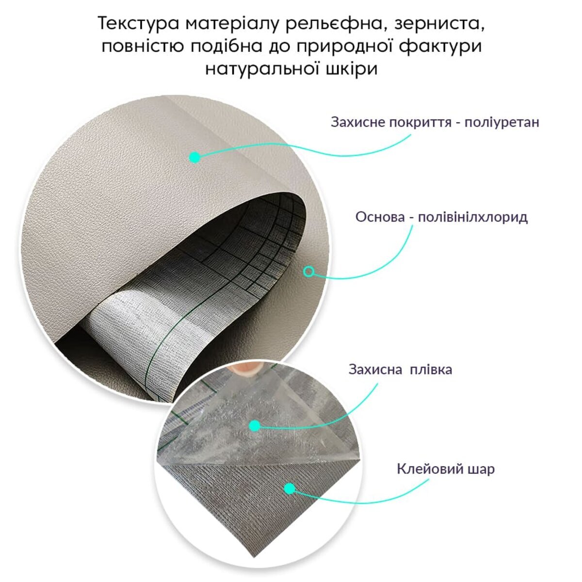 - Повна імітація натуральної шкіри завдяки зернистій текстурі та тактильно подібній фактурі;