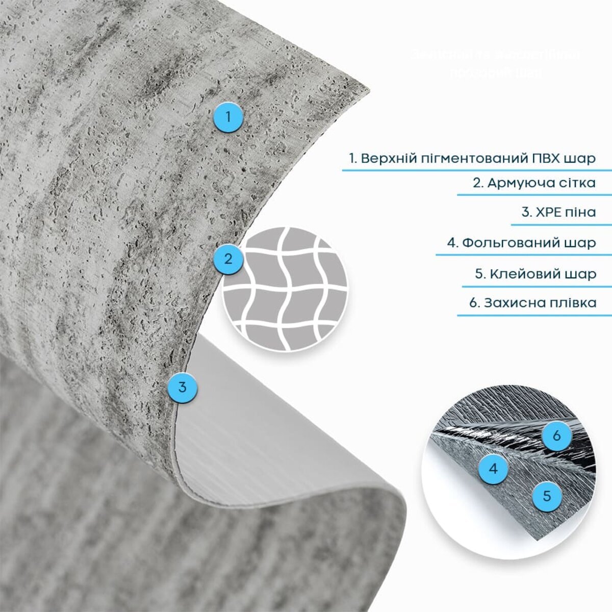 Пігментований ПВХ шар — це декоративний верхній шар із полівінілхлориду з додаванням пігментів та стабілізаторів, які забезпечують стійкість кольору та захист від УФ-випромінювання. Цей шар формує детальну фактуру й дизайн матеріалу, максимально наближені до декоративної штукатурки, включаючи дрібні нерівності та текстурні вкраплення. Він стійкий до вологи та впливу хімічних речовин, дуже гнучкий, не схильний до заломів і має здатність відновлювати форму після деформації. Армувальна сітка — це внутрішній зміцнювальний шар, який підвищує стабільність і міцність верхнього шару ПВХ. Виготовлена зі синтетичного матеріалу, вона не розтягується, допомагає зберігати форму та фактуру під час монтажу й експлуатації, а також запобігає деформаціям матеріалу.ХРЕ (спінений поліетилен) — це матеріал, який роблять із поліетилену, спеціально переплавляючи його та “зшиваючи” молекули між собою. Завдяки такій технології матеріал стає міцнішим і краще витримує температуру. Усередині ХРЕ є багато дрібних закритих комірок — саме через це він виходить легким, пружним і добре утримує тепло. Закрита структура також робить його стійким до вологи та довговічним у використанні.Фольгований шар виконує дві ключові функції: він відбиває теплові хвилі, забезпечуючи додаткову теплоізоляцію, а також захищає матеріал від вологи. Завдяки цьому шпалери стають більш стійкими до вологого середовища та чудово підходять для використання на кухнях. Окрім цього, фольгований шар додатково зміцнює ХРЕ-основу, запобігаючи її розтягуванню та зберігаючи форму матеріалу під час монтажу та експлуатації.Подвійний клейовий шар: нетоксична основа з високим рівнем адгезії.Захисна фольгована плівка: оберігає клейовий шар від пересихання та забруднення, легко знімається під час монтажу.Застосування: внутрішні оздоблювальні роботи: декорування стін у всіх видах житлових приміщень (кухня, ванна кімната, вітальня, дитяча або спальня, вхідна група) та комерційних приміщень (офісні приміщення, зони рецепцій, магазини, салони краси або фітнес-центри, місця громадської присутності, майстерні), меблів, дверей та інших рівних поверхонь.