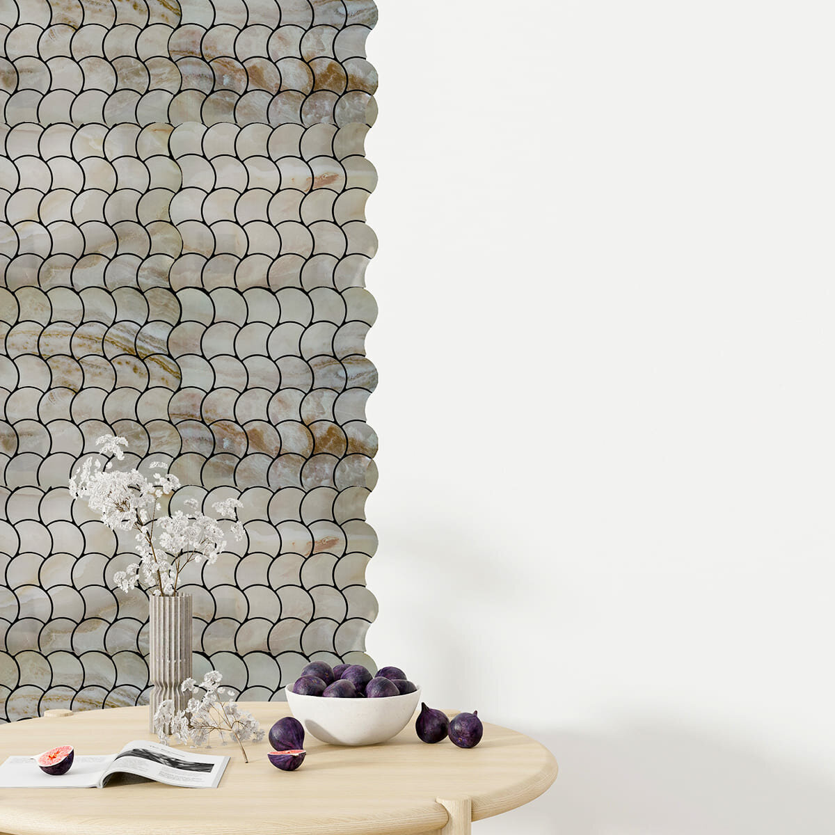 Плитка з ПЕТ (поліетилентерефталату) часто використовується для створення мозаїчних візерунків та декоративних елементів. PET - це пластичний матеріал, який має цілий ряд переваг: легкість, міцність і стійкість до впливу вологи. Цей матеріал може бути використаний для створення внутрішнього оздоблення як у житлових, так і у комерційних приміщеннях.