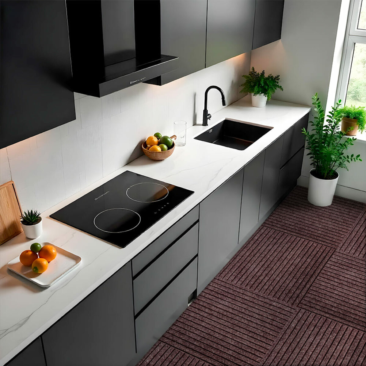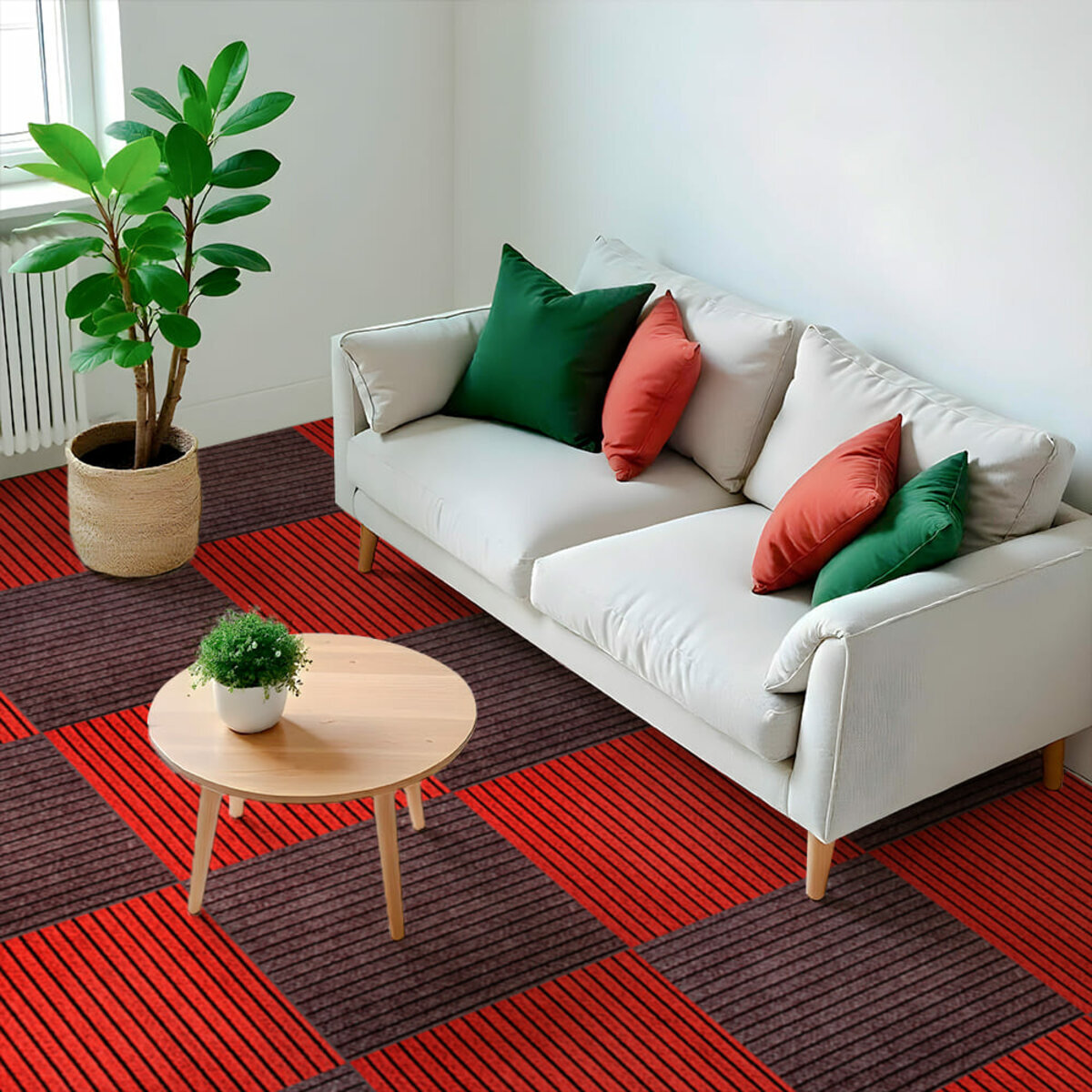 Ковролінову плитку можна монтувати на будь-яку поверхню – старий лінолеум, кахель, плитку, паркет, ламінат.