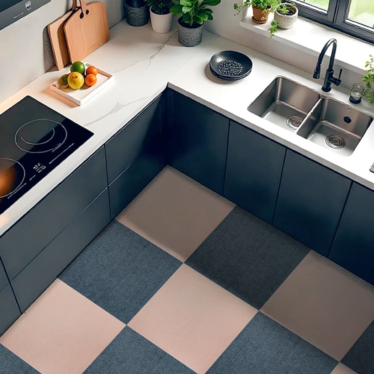 Ковролінову плитку можна монтувати на будь-яку поверхню – старий лінолеум, кахель, плитку, паркет, ламінат.