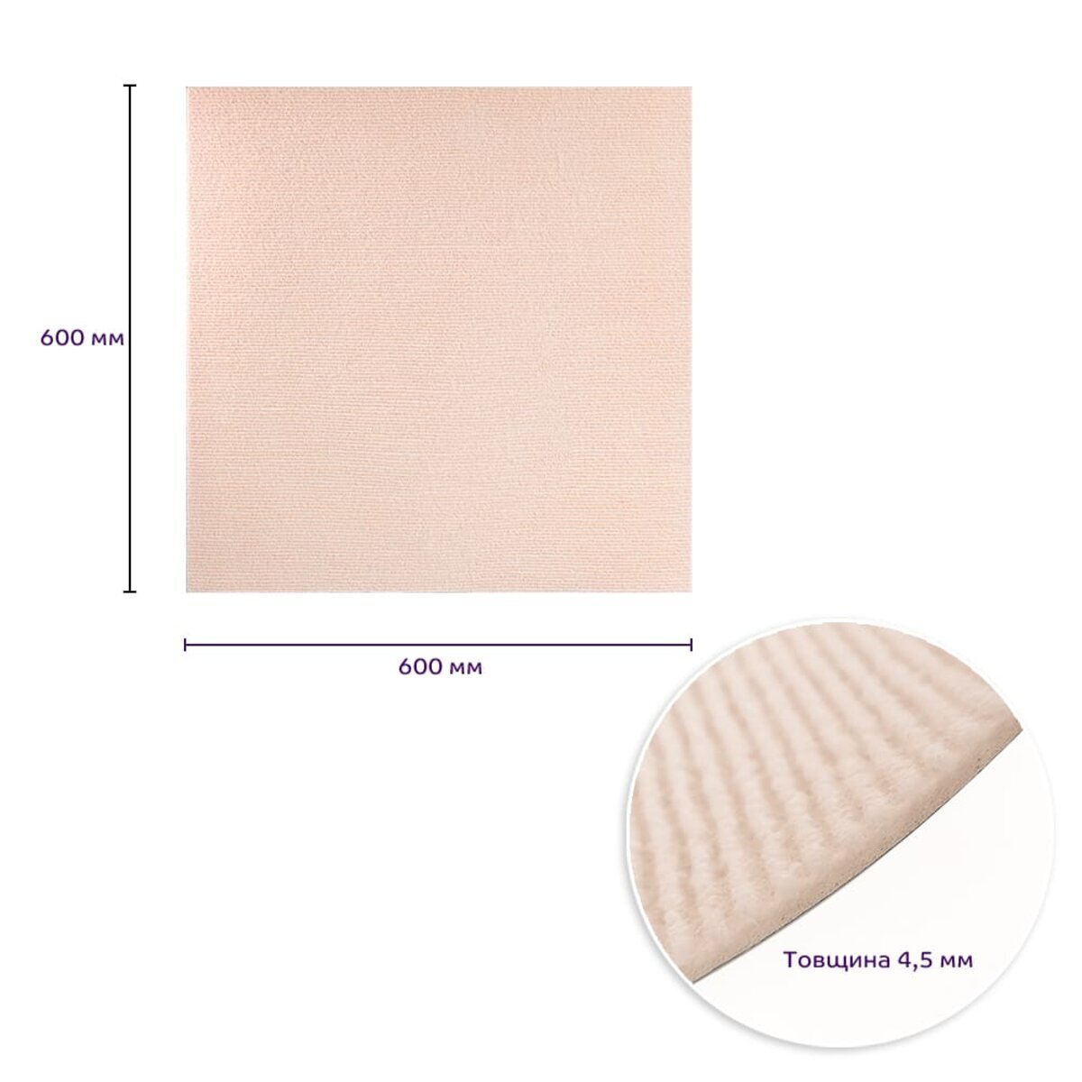 Опис - Самоклеюча плитка під ковролін молочний 600х600х4,5мм SW-00002483