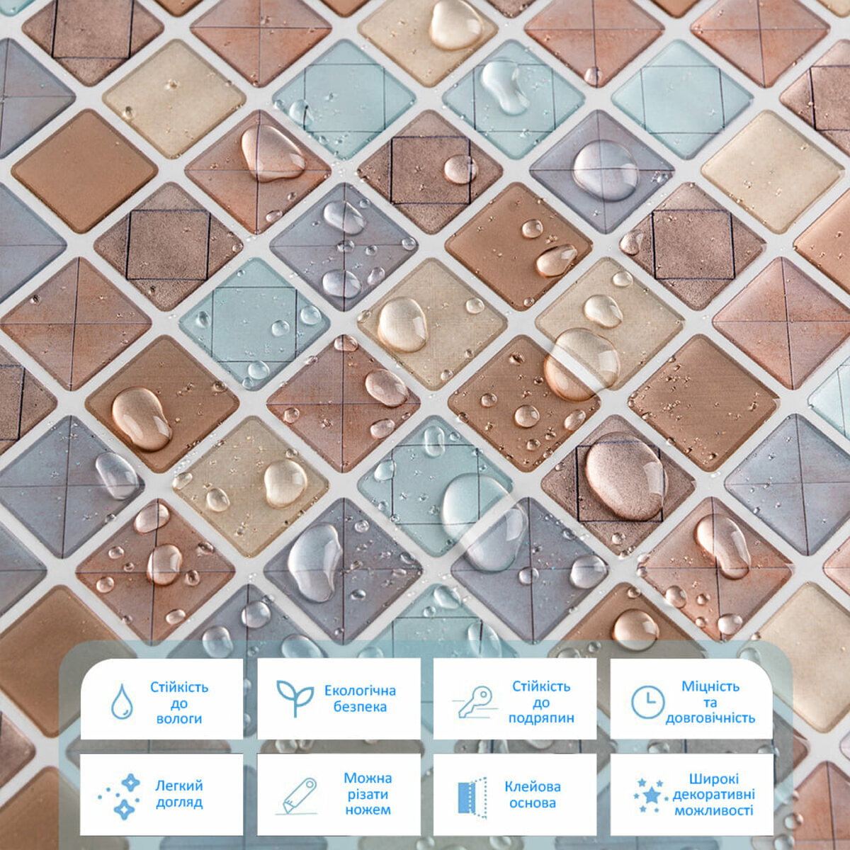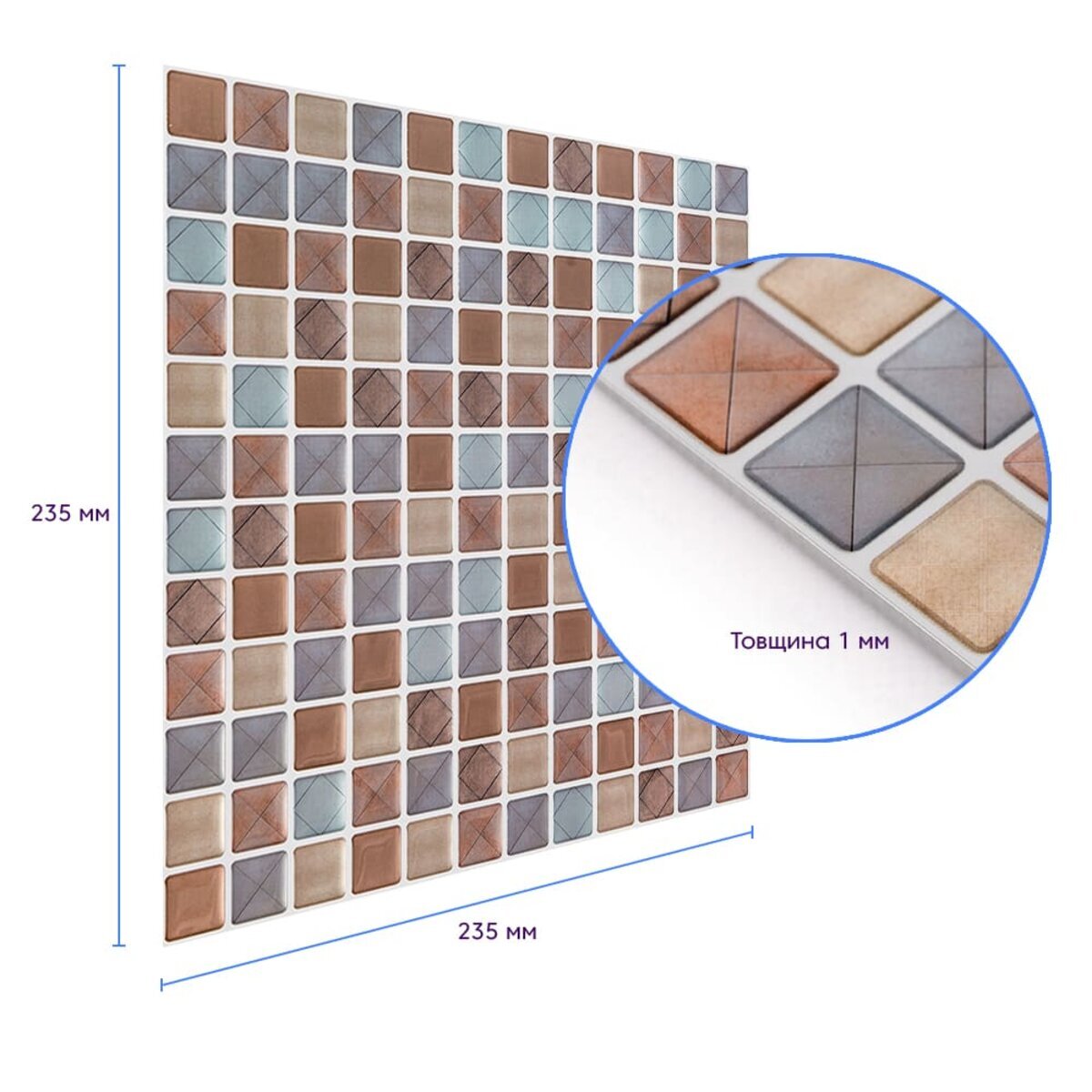 Фактура: що імітує керамічну плитку/мозаїку, поверхня глянсова