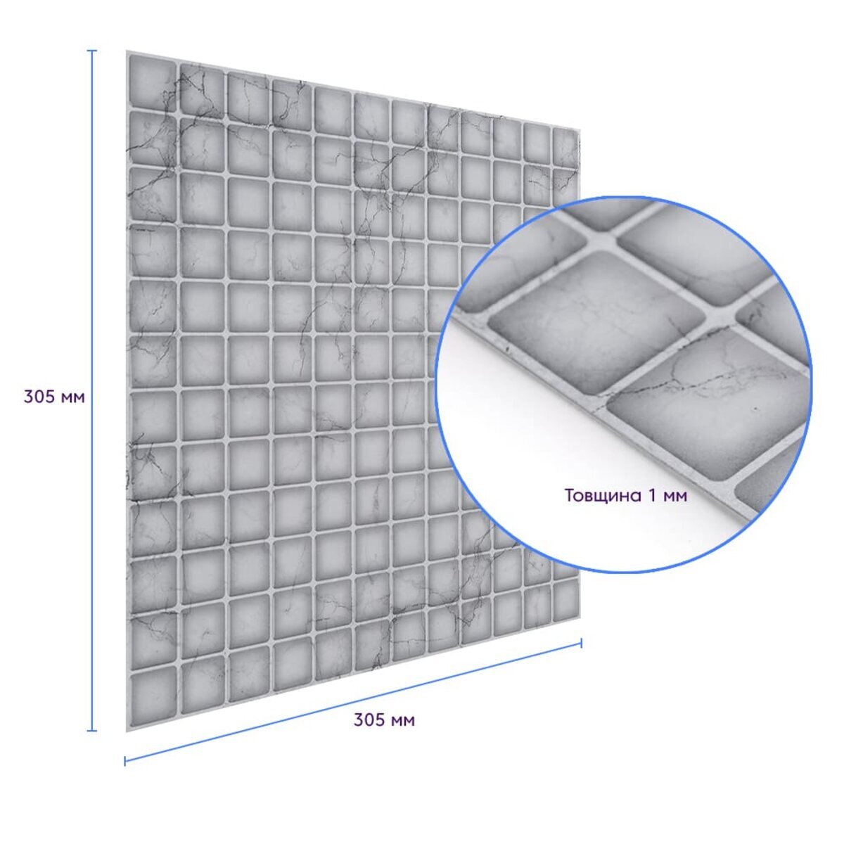 Площа покриття: 305 х 305 мм – 0,09 м²