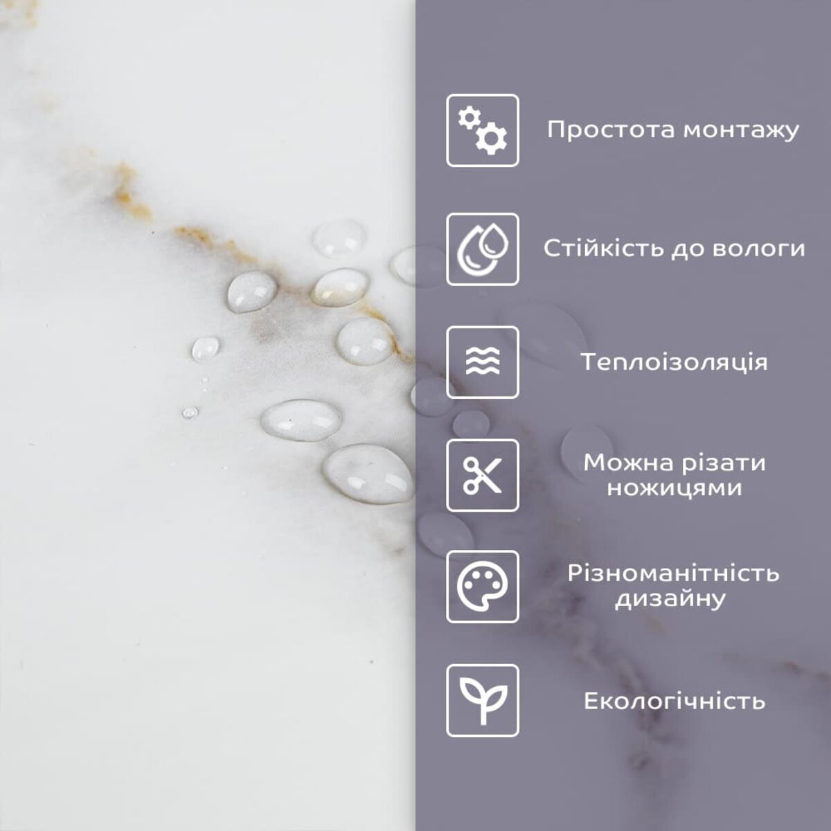 - 2. Стійкість до вологи: матеріал стійкий до впливу вологи та пари, а також до появи плісняви, що робить його придатним для використання у приміщеннях з високою вологістю, таких як ванни та кухні. Плитка підходить для створення фартуха кухні, можна клеїти біля плити на відстані не менше ніж 20-25 см;