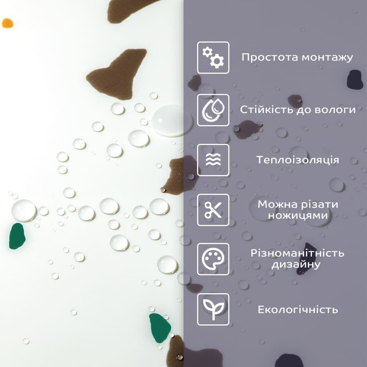 - 2. Стійкість до вологи: матеріал стійкий до впливу вологи та пари, а також до появи плісняви, що робить його придатним для використання у приміщеннях з високою вологістю, таких як ванни та кухні. Плитка підходить для створення фартуха кухні, можна клеїти біля плити на відстані не менше ніж 20-25 см;