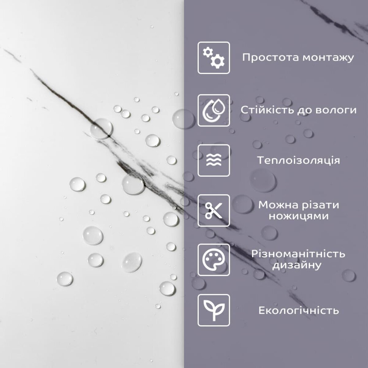 - 2. Стійкість до вологи: матеріал стійкий до впливу вологи та пари, а також до появи плісняви, що робить його придатним для використання у приміщеннях з високою вологістю, таких як ванни та кухні. Плитка підходить для створення фартуха кухні, можна клеїти біля плити на відстані не менше ніж 20-25 см;