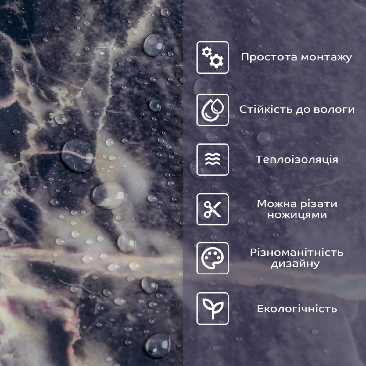 - 2. Стійкість до вологи: матеріал стійкий до впливу вологи та пари, а також до появи плісняви, що робить його придатним для використання у приміщеннях з високою вологістю, таких як ванни та кухні. Плитка підходить для створення фартуха кухні, можна клеїти біля плити на відстані не менше ніж 20-25 см;