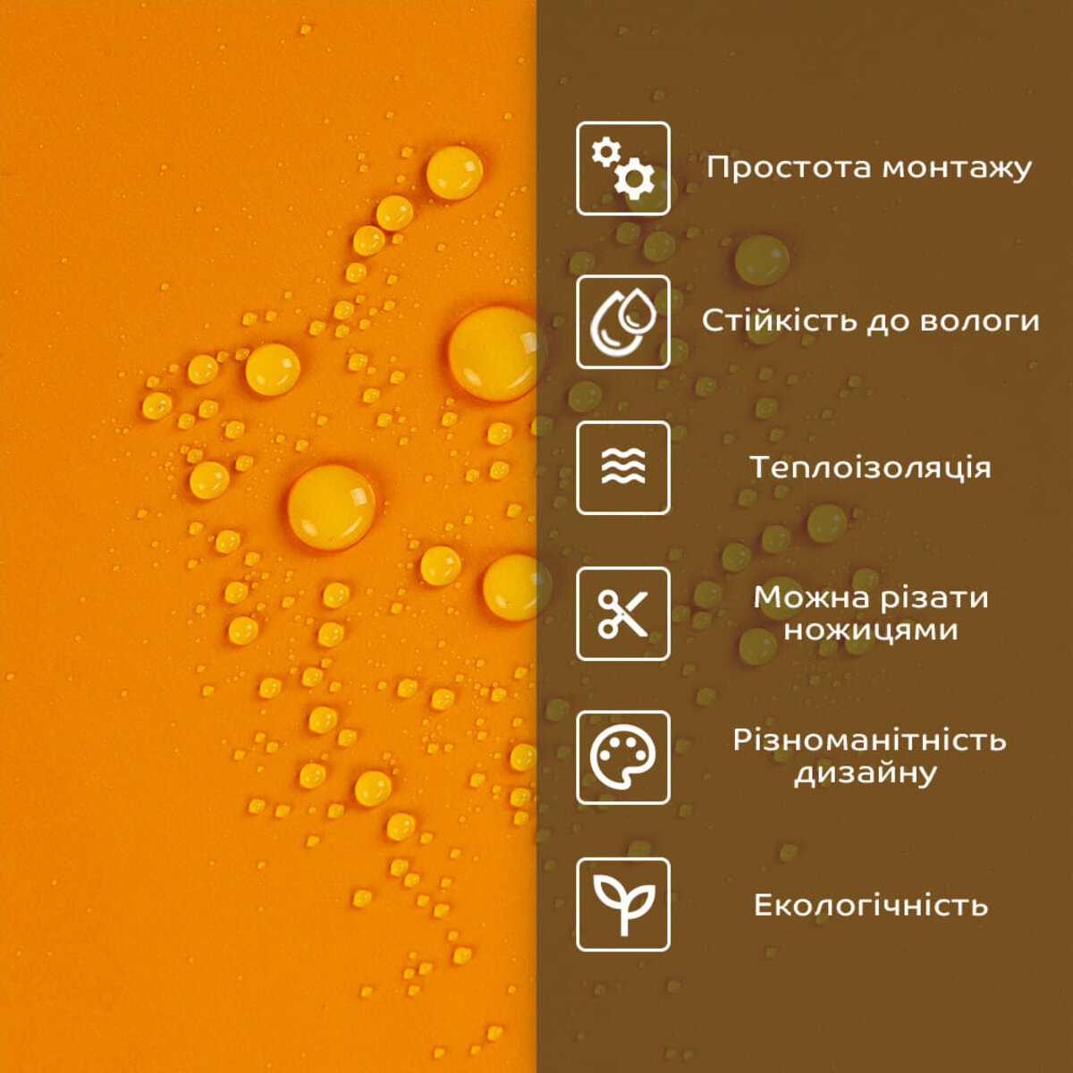 - 1. Легкість та міцність: плитка легка та міцна, що спрощує її логістику, установку та забезпечує довгий термін служби. Матеріал легкий в установці, можна різати ножицями чи монтажним ножем, не потребує додаткових матеріалів чи спеціалістів. Між смугами не розходиться, не роздмухується і не деформується. Відсоток обрізу становить 1%, що є найкращим показником для настінних покриттів;