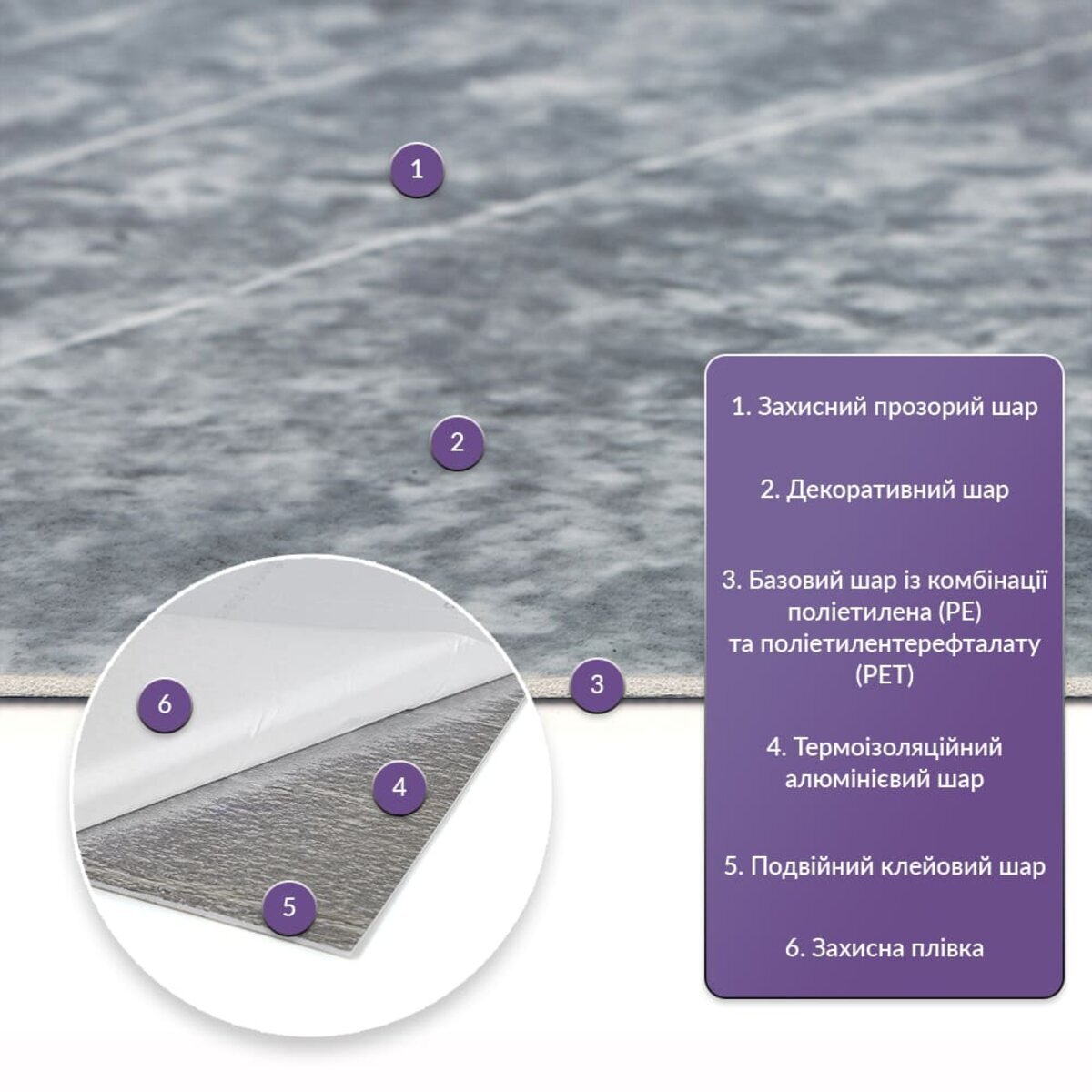 - 3. Ізоляція: плитка має звукову та теплоізоляцію завдяки наявності повітряних прошарків та додатковому алюмінієвому шару;