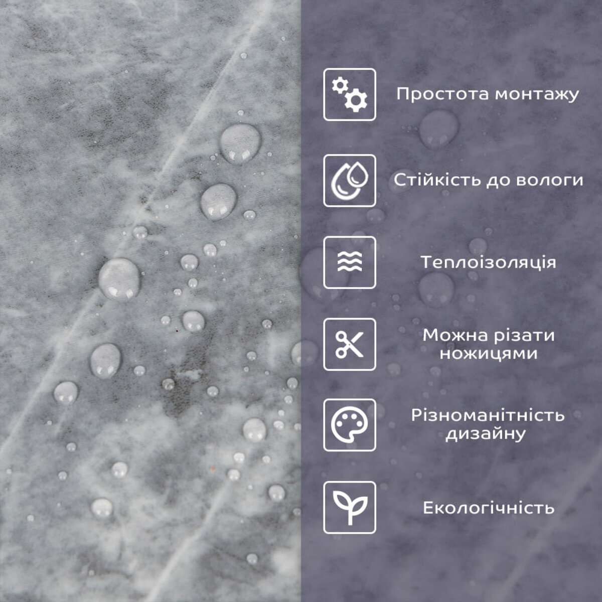 - 2. Стійкість до вологи: матеріал стійкий до впливу вологи та пари, а також до появи плісняви, що робить його придатним для використання у приміщеннях з високою вологістю, таких як ванни та кухні. Плитка підходить для створення фартуха кухні, можна клеїти біля плити на відстані не менше ніж 20-25 см;