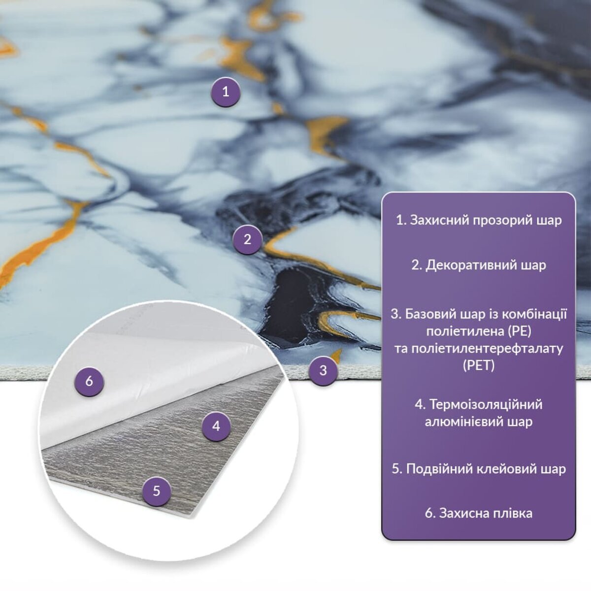 Матеріал: PE+PET, складається з суміші двох полімерів: поліетилену (PE) та поліетилентерефталату (PET)