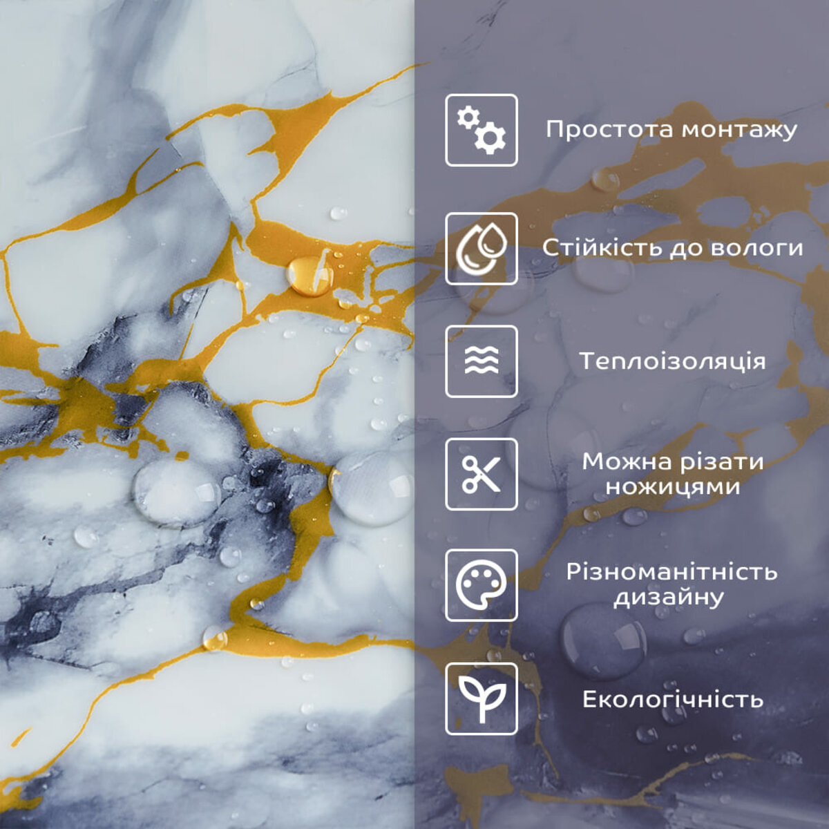 - 1. Легкість та міцність: плитка легка та міцна, що спрощує її логістику, установку та забезпечує довгий термін служби. Матеріал легкий в установці, можна різати ножицями чи монтажним ножем, не потребує додаткових матеріалів чи спеціалістів. Між смугами не розходиться, не роздмухується і не деформується. Відсоток обрізу становить 1%, що є найкращим показником для настінних покриттів;