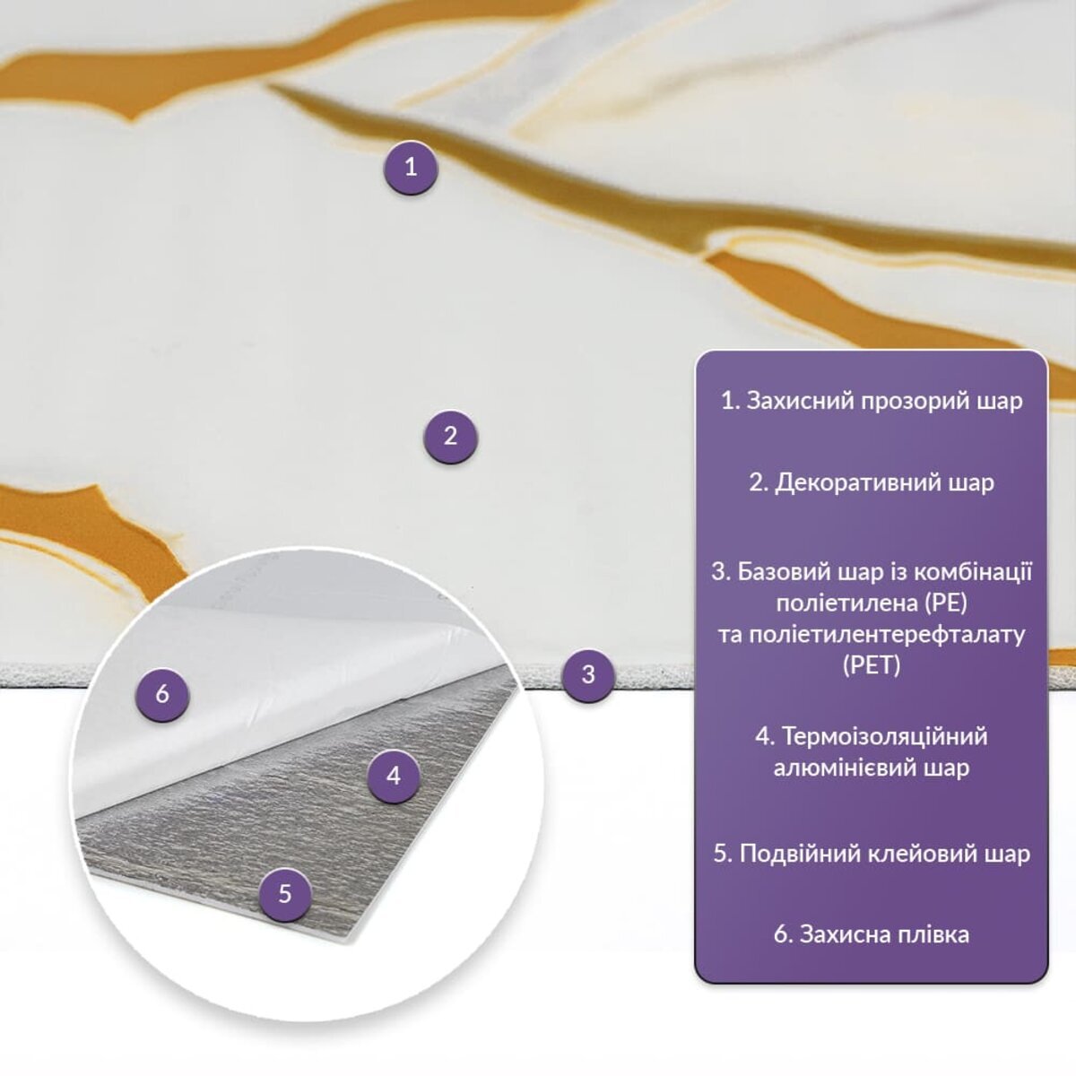 Характеристики - Самоклеюча стінова PET плитка у рулоні 600х3000х2мм SW-00002637