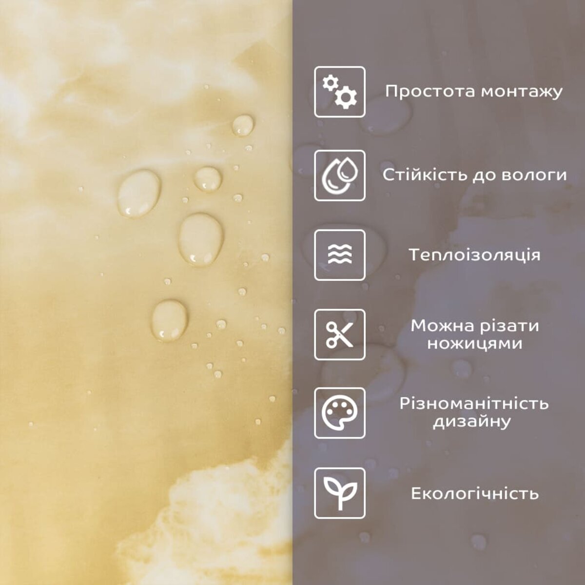 - 2. Стійкість до вологи: матеріал стійкий до впливу вологи та пари, а також до появи плісняви, що робить його придатним для використання у приміщеннях з високою вологістю, таких як ванни та кухні. Плитка підходить для створення фартуха кухні, можна клеїти біля плити на відстані не менше ніж 20-25 см;