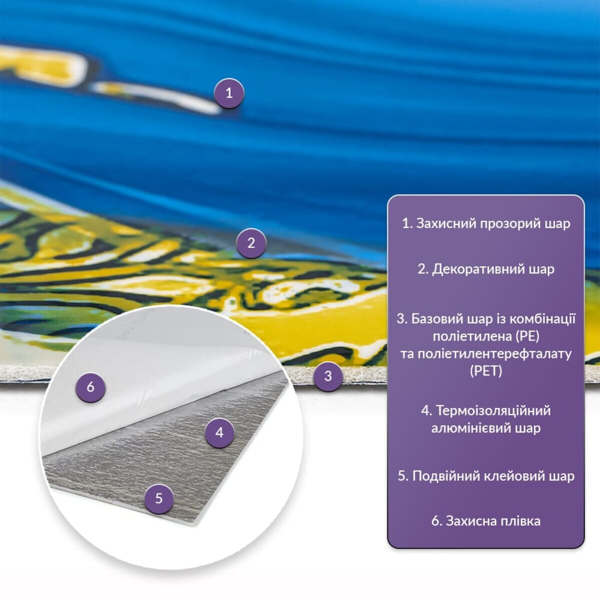 - 3. Ізоляція: плитка має звукову та теплоізоляцію завдяки наявності повітряних прошарків та додатковому алюмінієвому шару;