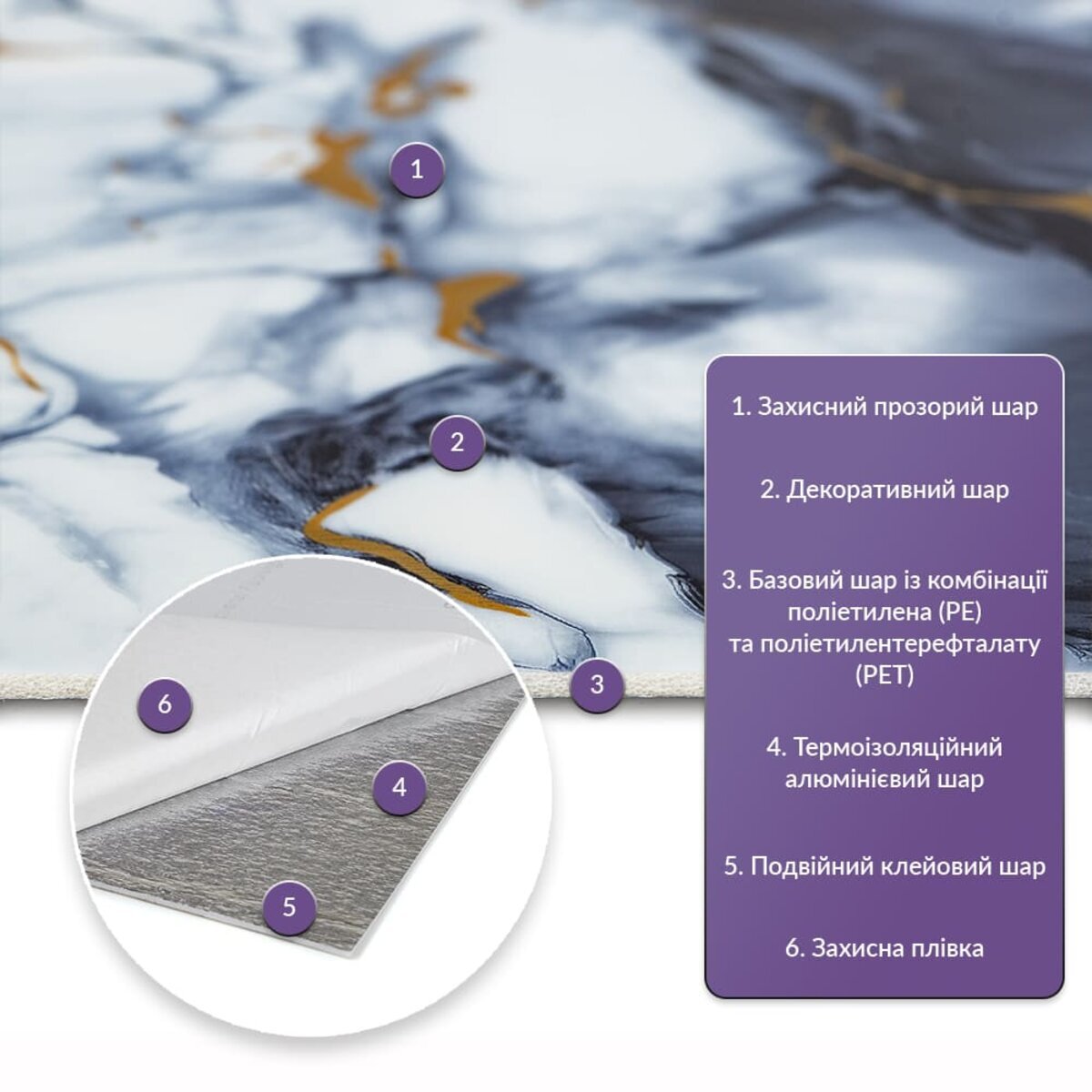 Матеріал: PE+PET, складається з суміші двох полімерів: поліетилену (PE) та поліетилентерефталату (PET)
