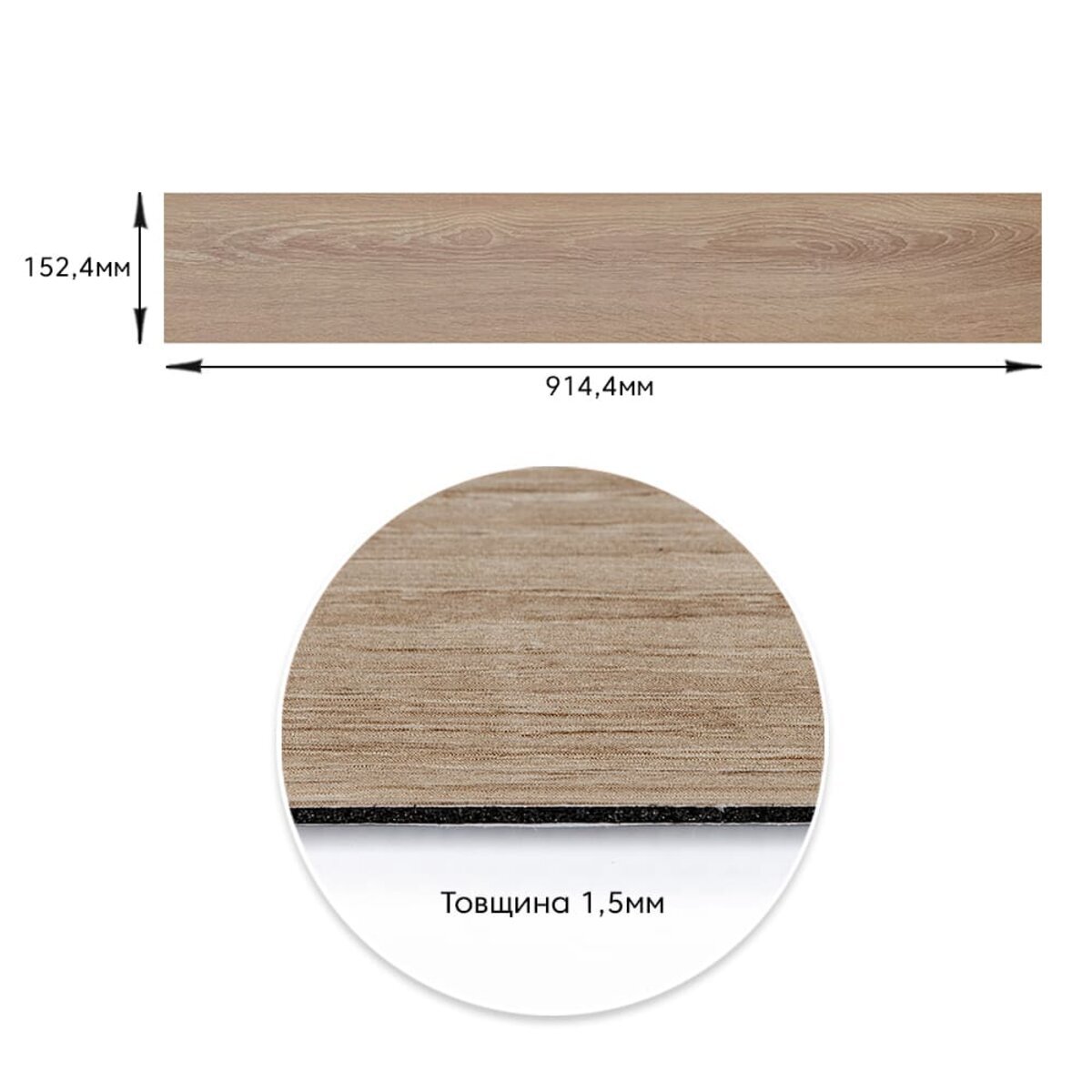 Опис - Самоклеюча вінілова плитка 152.4х914.4х1.5мм Дуб молочний, ціна за 1 шт. (СВП-010) Матова SW-00001129