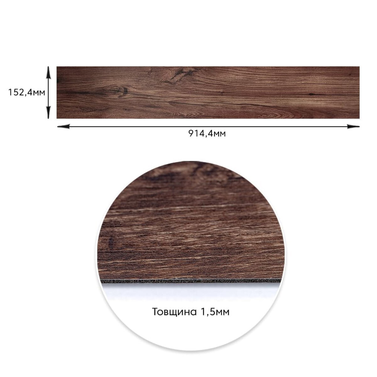Опис - Самоклеюча вінілова плитка 152.4х914.4х1.5мм Каштан, ціна за 1 шт. (СВП-002) Матова SW-00000282