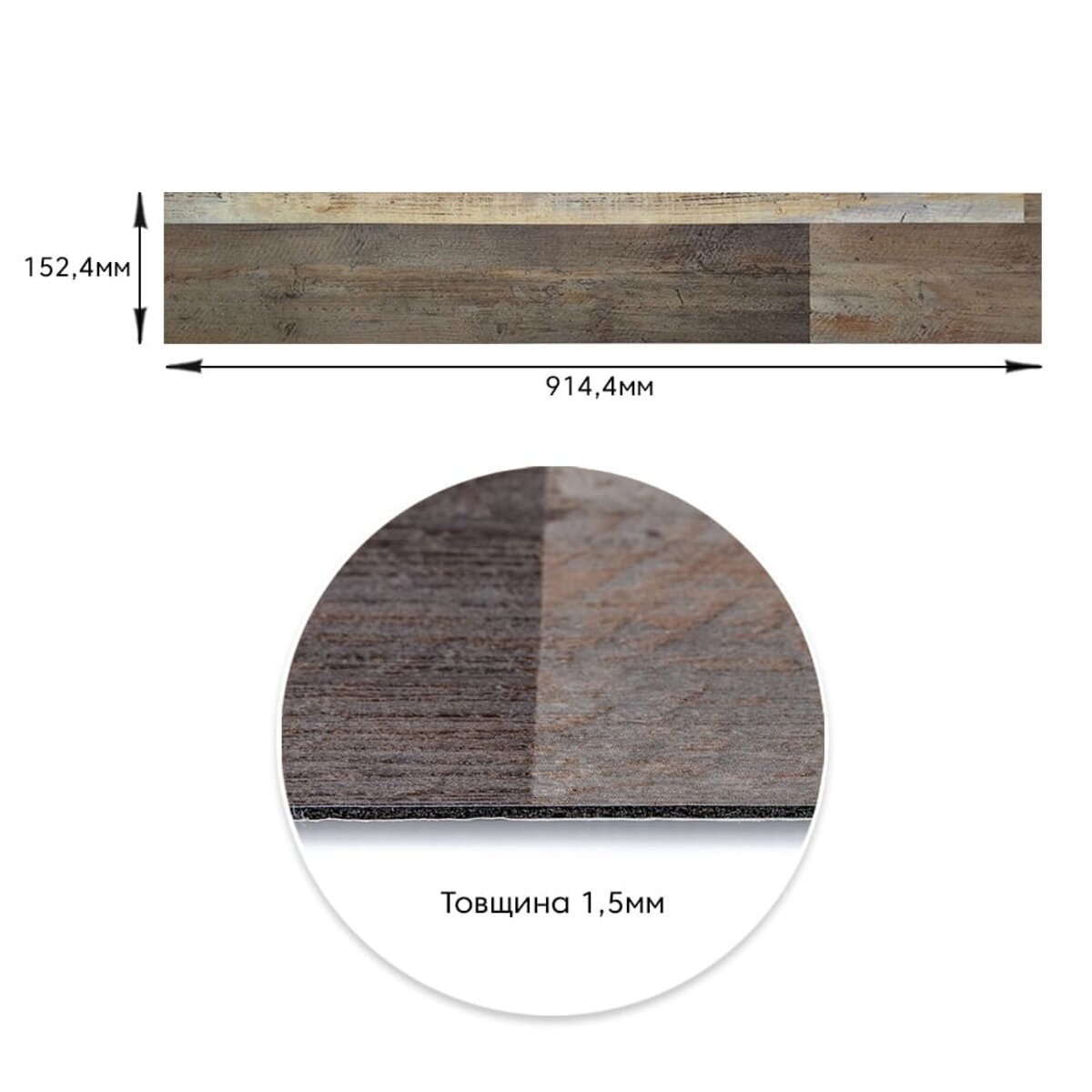 Площа покриття: 152 х 914 мм – 0,138 м², кількість на 1 м² – 8 одиниць
