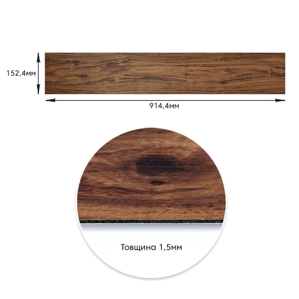 Опис - Самоклеюча вінілова плитка 152.4х914.4х1.5мм Темне дерево, ціна за 1 шт. (СВП-004) Матова SW-00000222