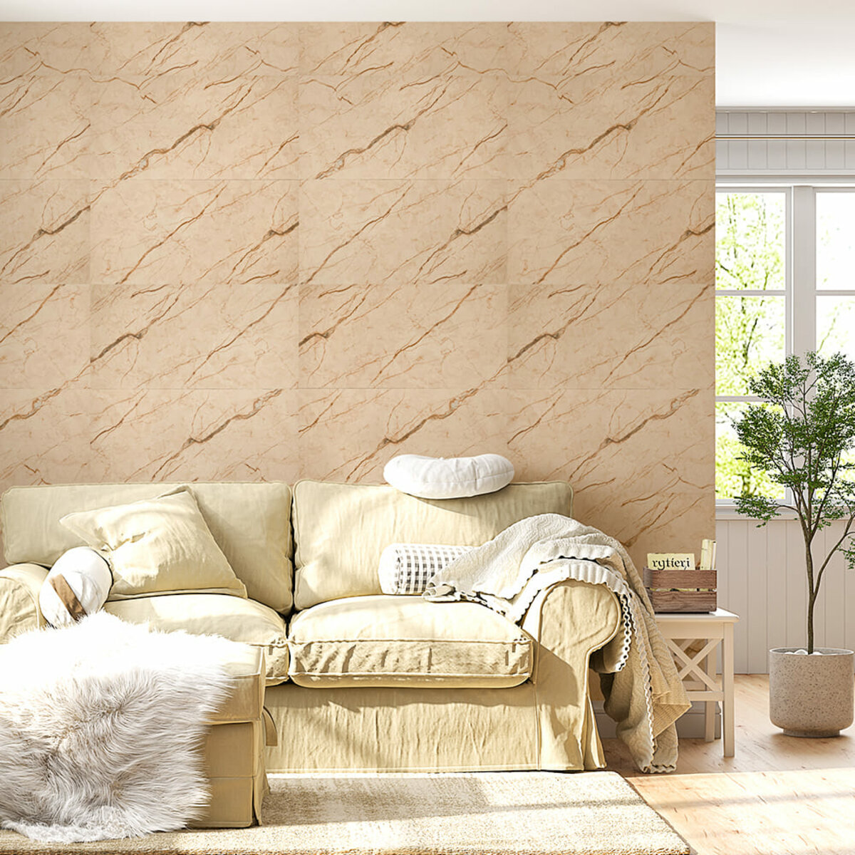 - Легка установка: самоклеючий шар робить процес укладання швидким і простим, не вимагаючи додаткового клею, додаткових матеріалів чи спеціалістів. Матеріал укладається стик в стик, його можна різати ножицями чи монтажним ножем, між смугами не розходиться, не набухає і не деформується. Відсоток обрізу становить 1%, що є найкращим показником для настінних покриттів;